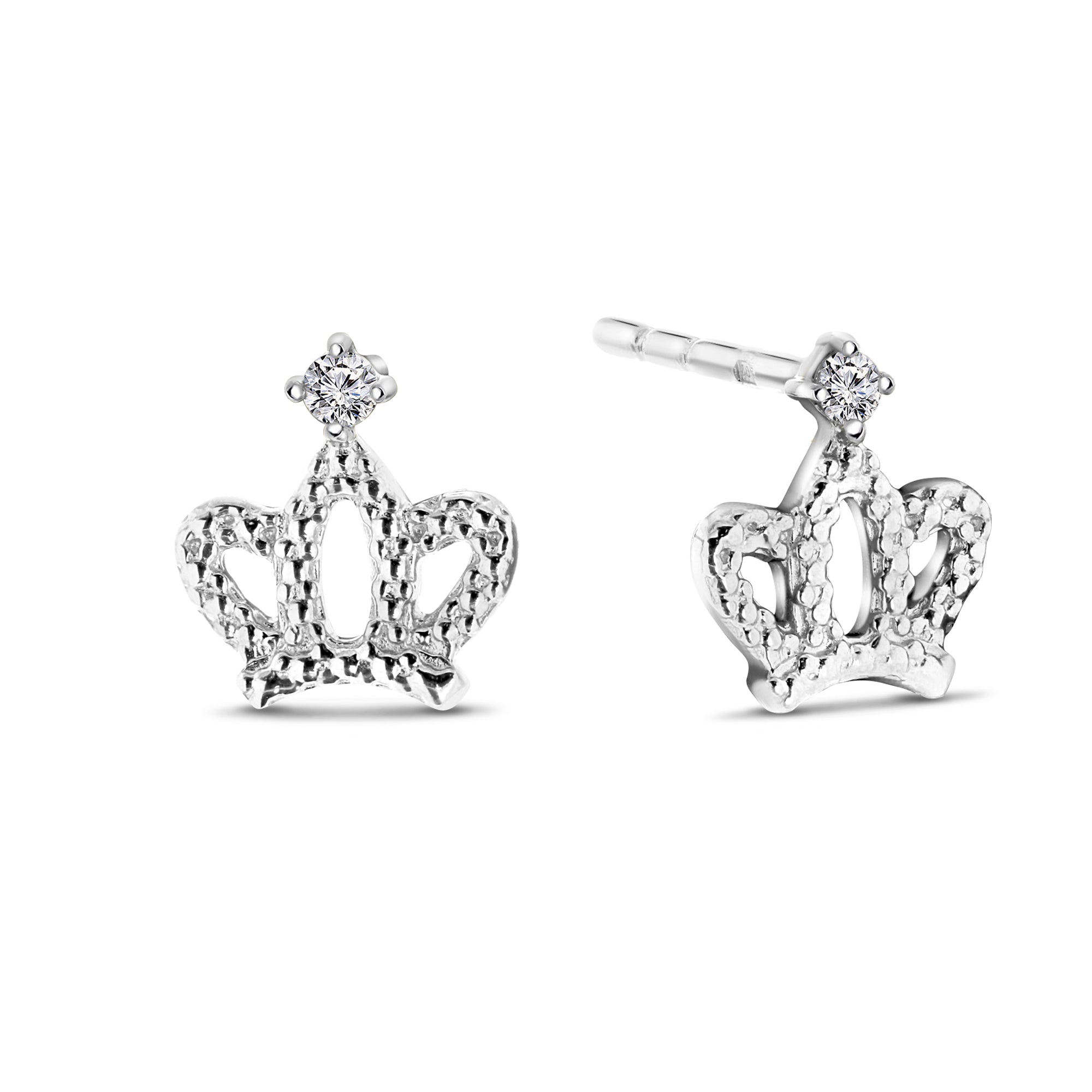 Cercei tip stift din aur alb de 14 karate din colectia Gold by Siebel. Cerceii sunt asezati cu pietre de zirconiu si o coroana. Coroana are 1,8 centimetri lungime si latime.