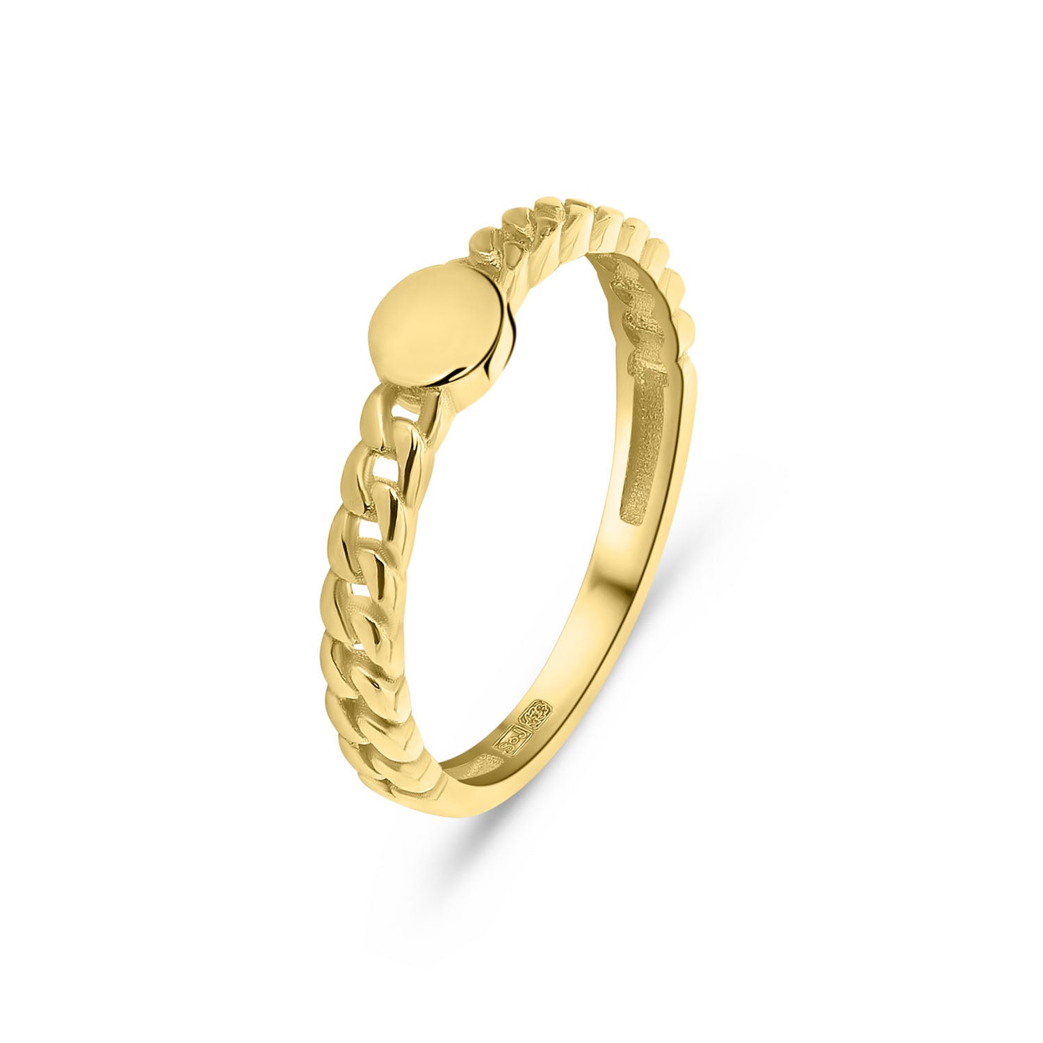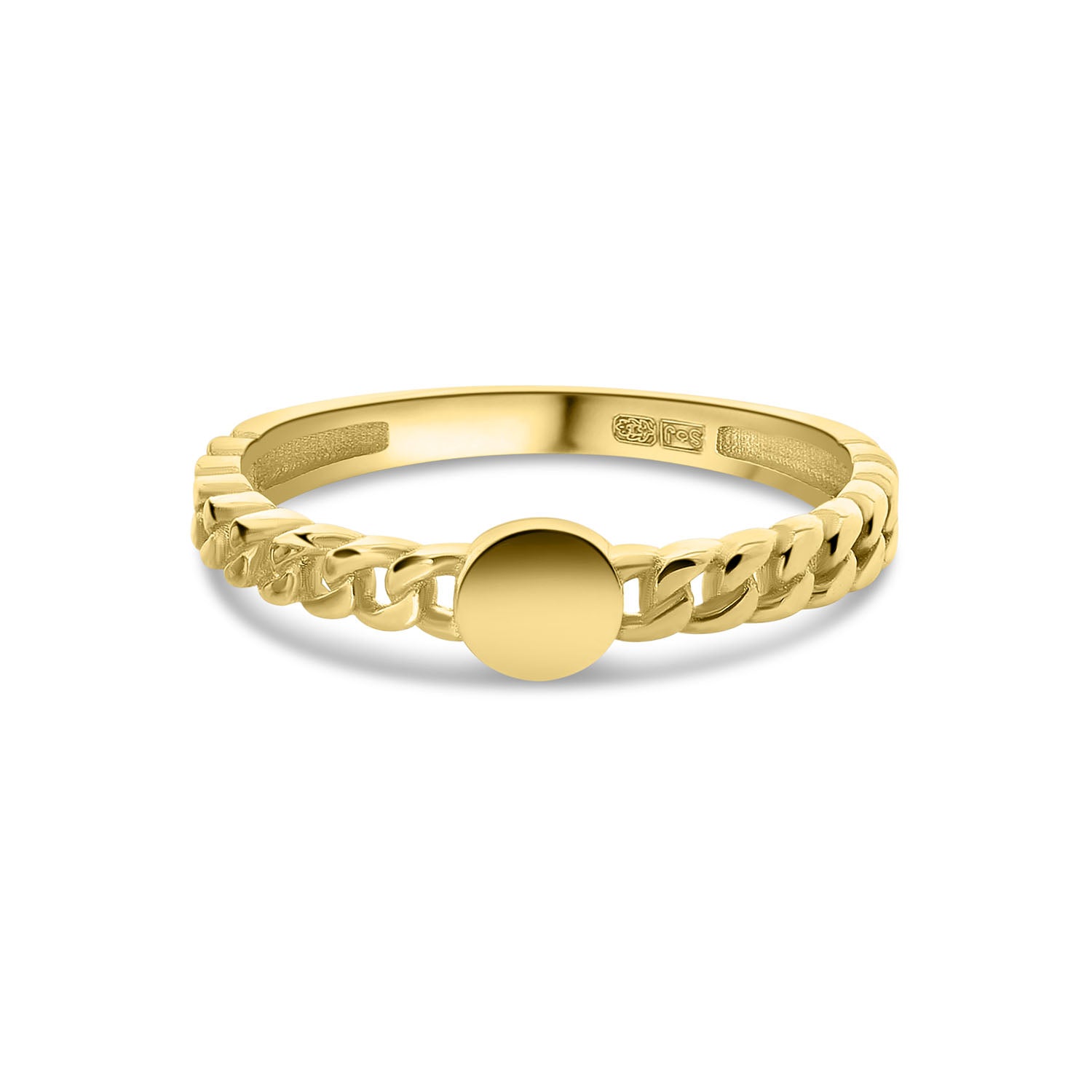 Inel din aur galben din colectia Gold by Siebel. Fabricat din aur galben de 14 karate, inelul are o legatura cu bordura. Asociati-l cu bijuterii asortate din colectie pentru a va completa look-ul.
