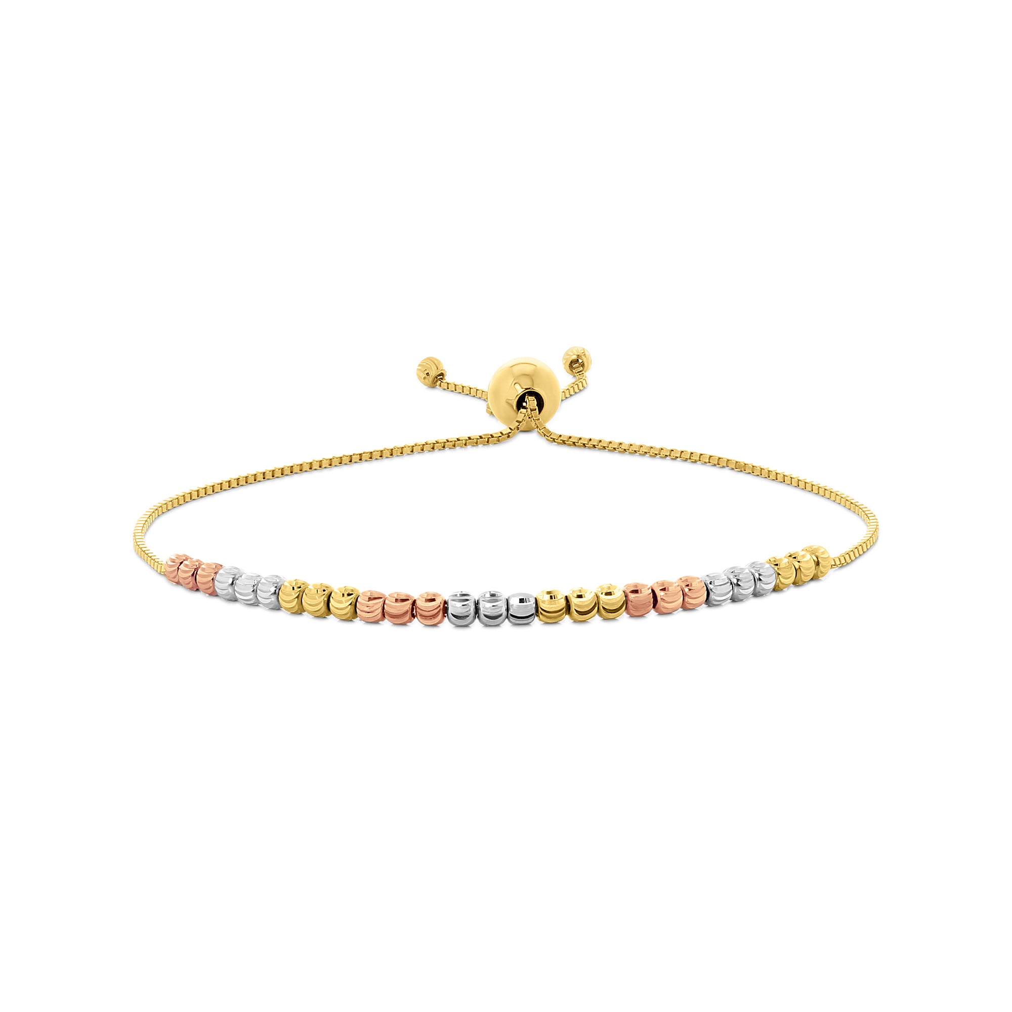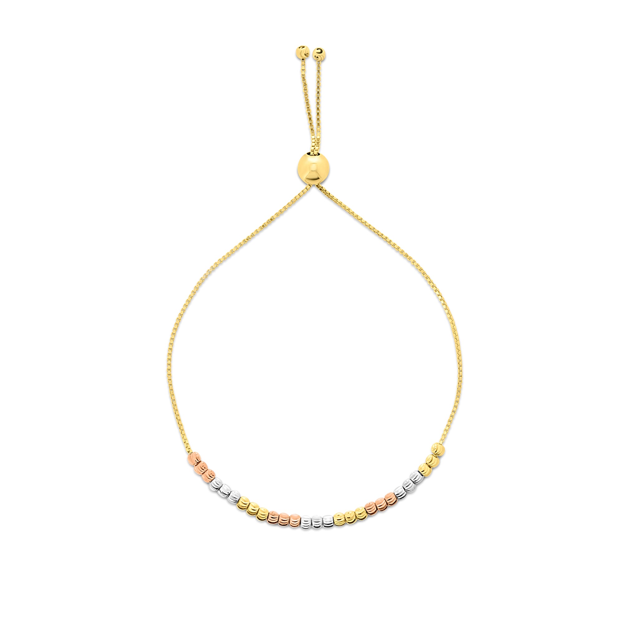 Aceasta bratara fantezie bicolora este din colectia Gold by Siebel. Fabricat din aur galben, alb si roz de 14 karate, are o inchidere glisanta pentru o ajustare usoara. Combinati-l cu alte bijuterii din colectie.