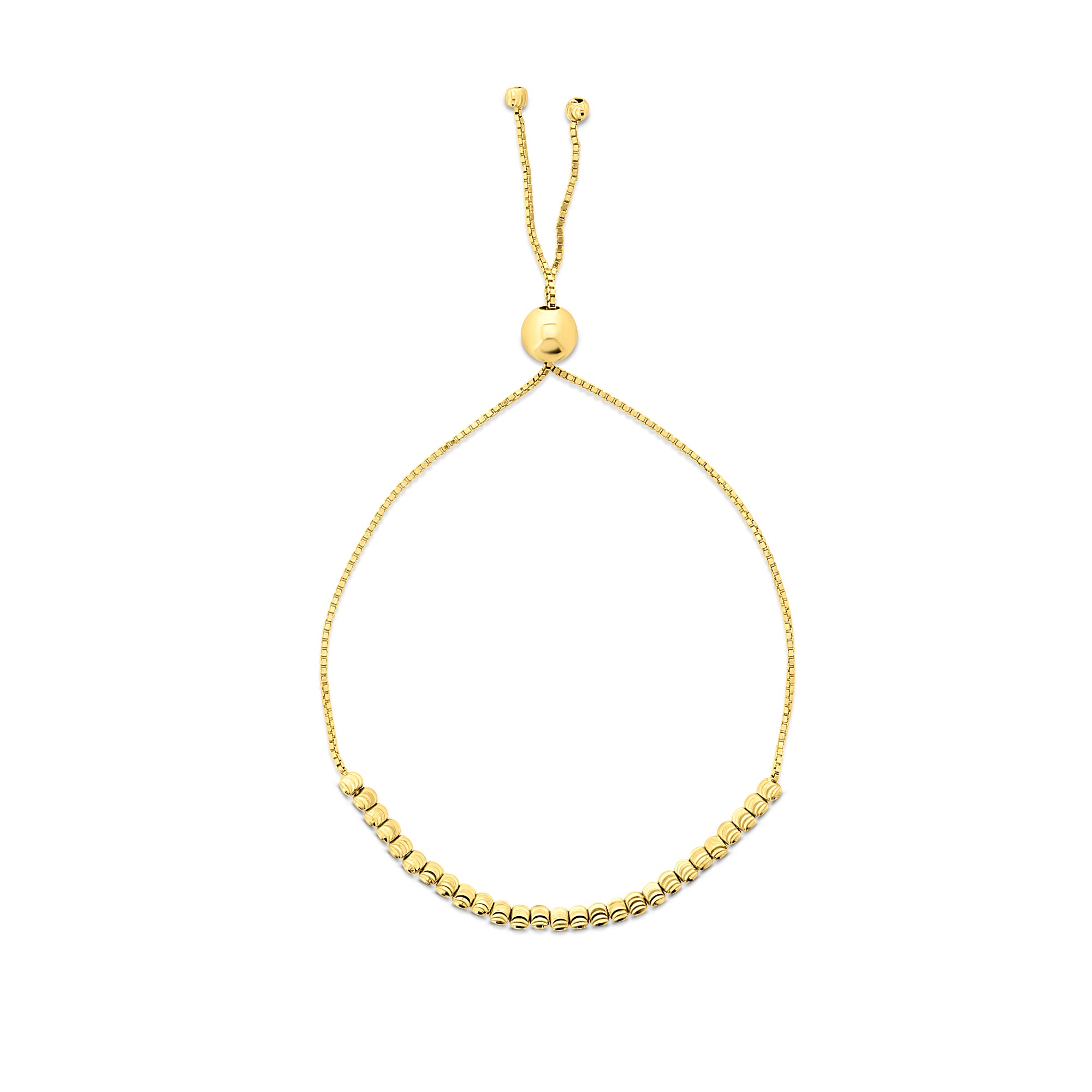 Bratara cu margele din aur galben din colectia Gold by Siebel. Aceasta bratara este realizata din aur galben de 14 karate si are margele mici de aur. Bratara are o inchidere glisanta pentru o reglare usoara. Asociati aceasta bratara cu alte bijuterii din colectie.