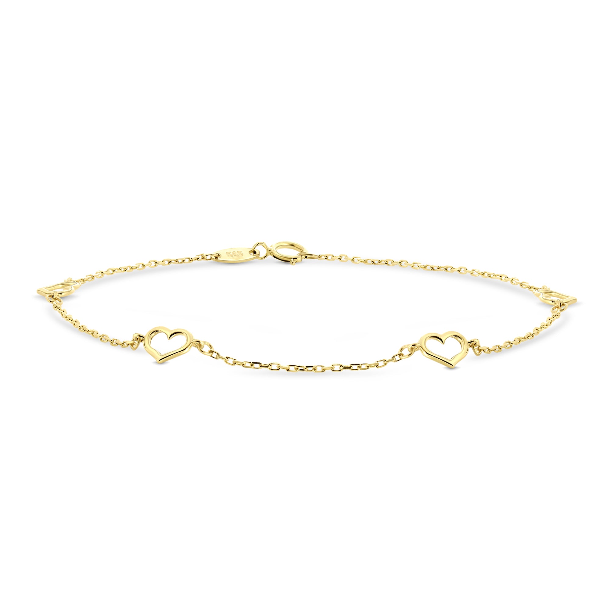 Bratara din aur galben de 14 karate din colectia Gold by Siebel. Bratara cu farmec are patru inimi raspandite si are 185 mm lungime.