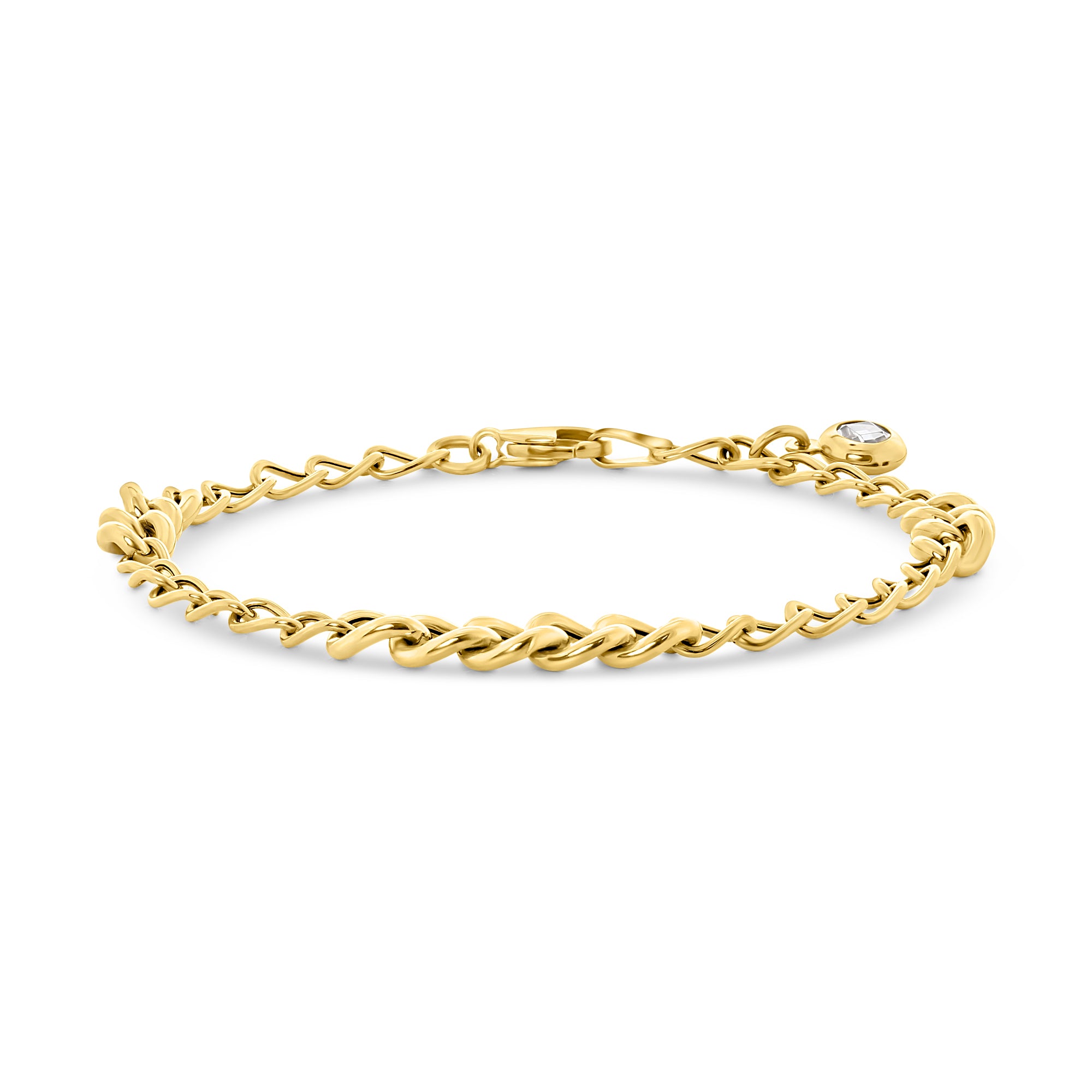 Bratara cu zale din aur galben cu zirconiu din colectia Gold by Siebel. Aceasta bratara cu zale este realizata din aur galben de 14 karate si are 18 cm lungime. Combinati-l cu alte bijuterii din colectie.