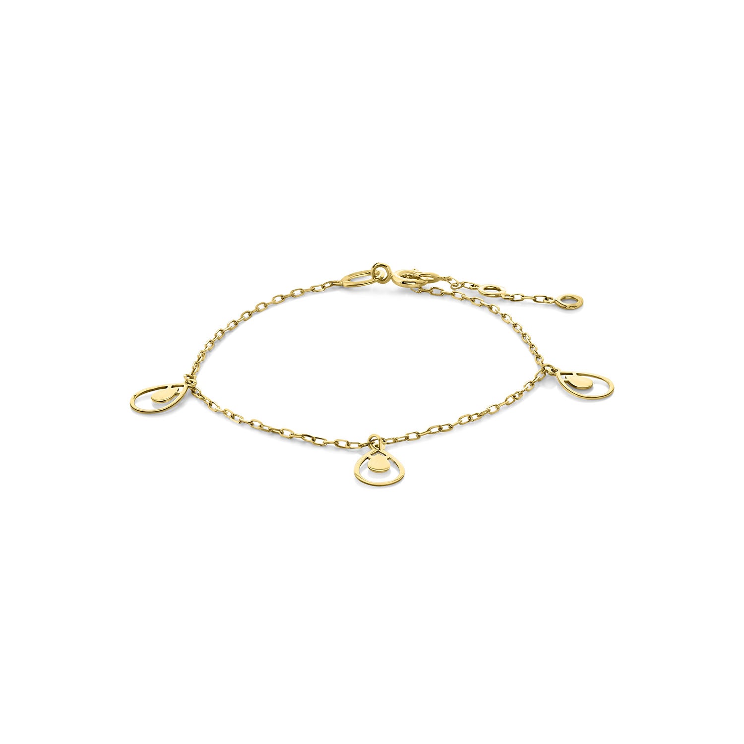 Bratara cu farmec din aur galben din colectia Gold by Siebel. Fabricata din aur galben de 14 karate, aceasta bratara este decorata cu brelocuri in forma de lacrima. Bratara are 17 cm lungime.