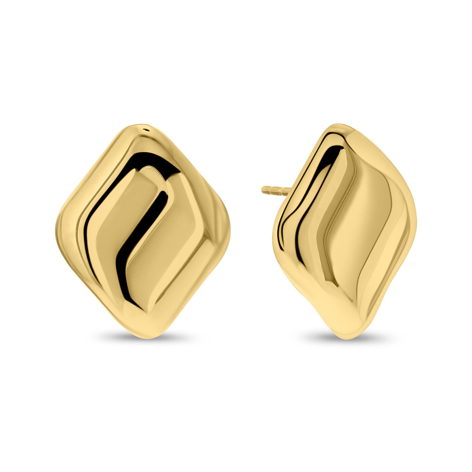 Acesti cercei tip stift din aur galben de 14 karate de la Gold by Siebel se remarca prin forma lor unica de diamant. Suprafata ondulata capteaza jucaus lumina si confera piesei un aspect sculptural. Combinatia dintre geometrie si fluiditate face din acesti cercei tip stift o declaratie eleganta si indrazneata. Ideal pentru cei care apreciaza eleganta contemporana cu un avantaj artistic.