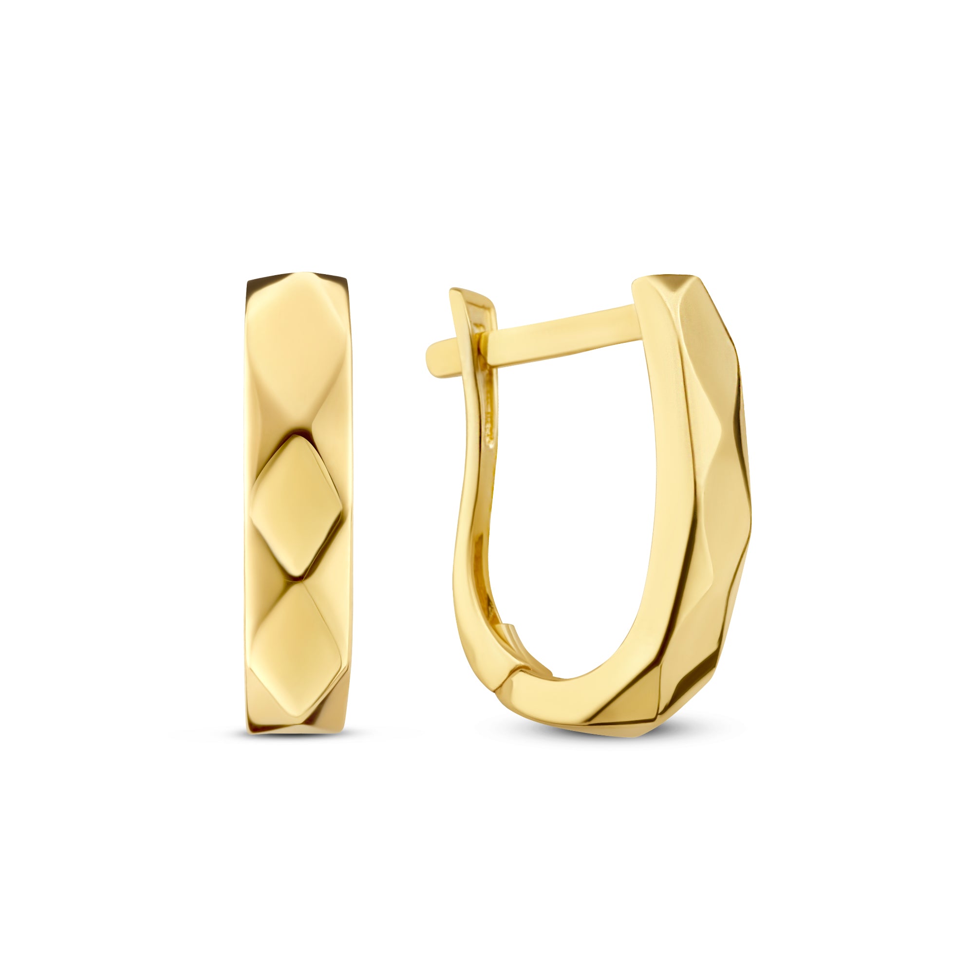 Cercei din aur galben de 14 karate din colectia Gold by Siebel. Acesti cercei fatetati au 15,8 mm lungime si 3,8 mm latime.