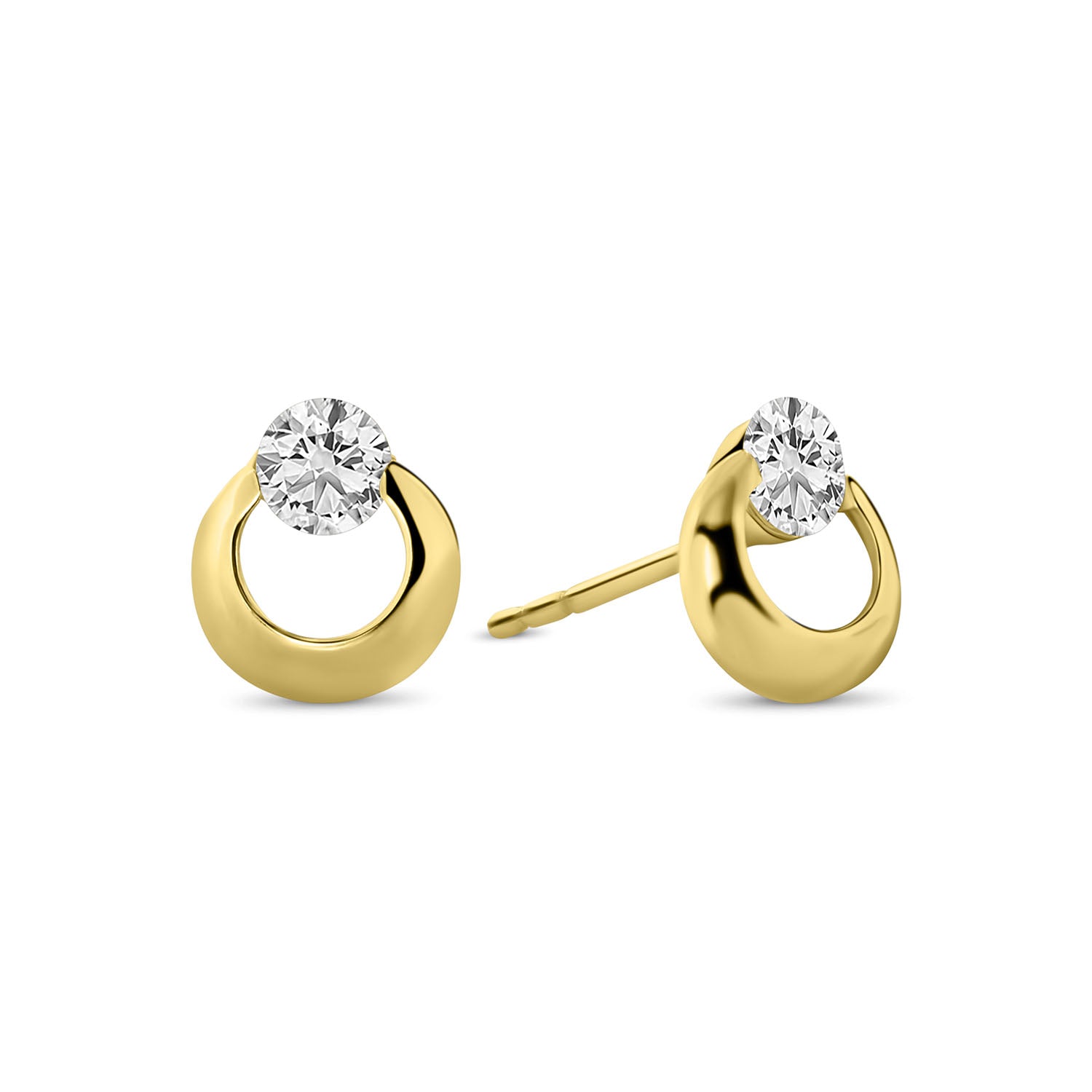 Cercei rotunzi din aur galben cu zirconiu din colectia Gold by Siebel. Confectionati din aur galben de 14 karate, acesti cercei au in partea de sus o frumoasa piatra de zirconiu taiata stralucitor. Asociati acesti cercei cu alte bijuterii din colectie pentru a va completa look-ul.