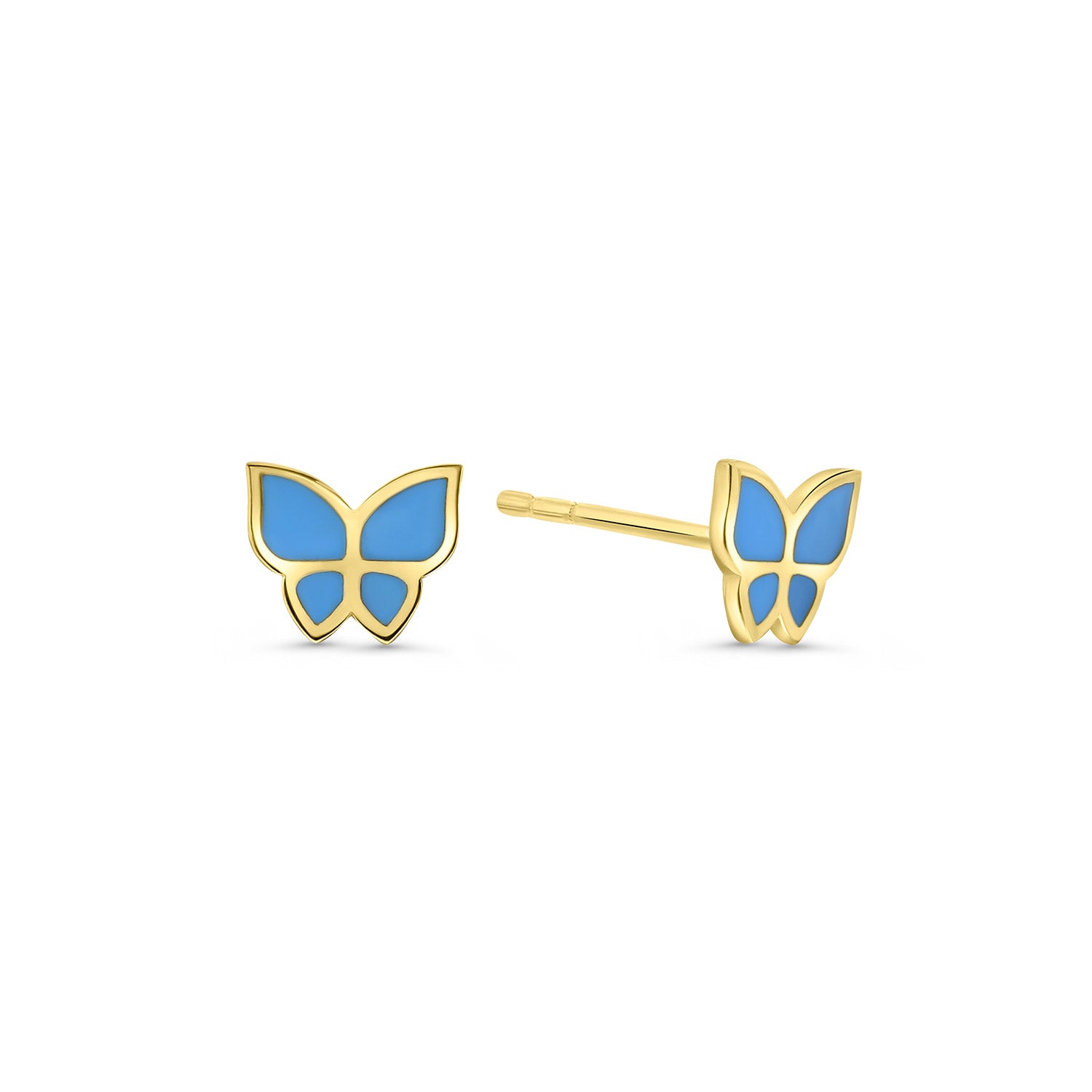 Cercei stud din aur galben din colectia Gold by Siebel. Acesti cercei sunt confectionati din aur galben de 14 karate si au email albastru. Au forma unui fluture frumos. Acesti cercei tip stift sunt cadoul perfect pentru copii.