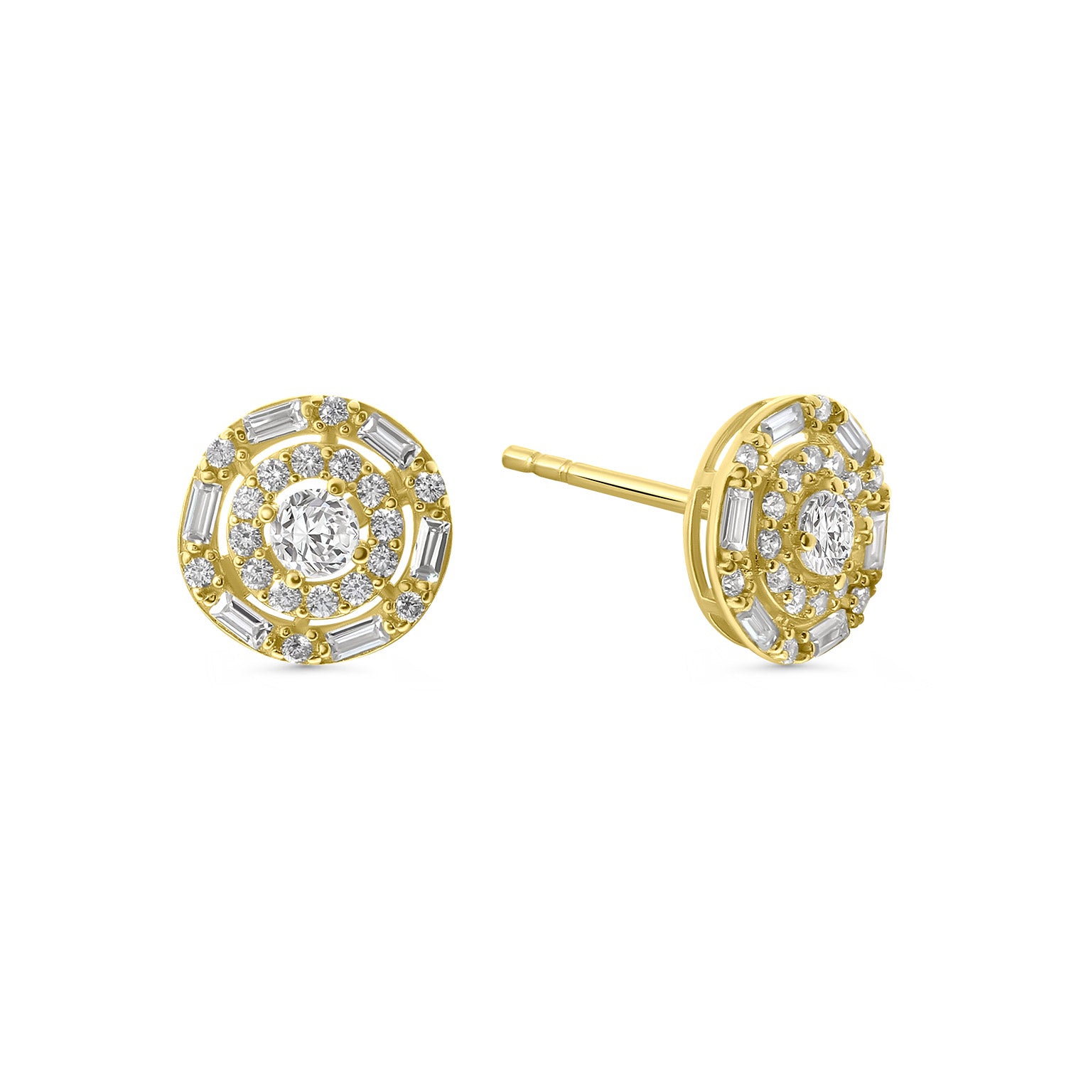 Cercei stud din aur galben din colectia Gold by Siebel. Acesti cercei tip stift sunt confectionati din aur galben de 14 karate si impodobiti cu 50 de pietre de zirconiu stralucitoare. Asociati acesti cercei cu alte bijuterii din colectie.