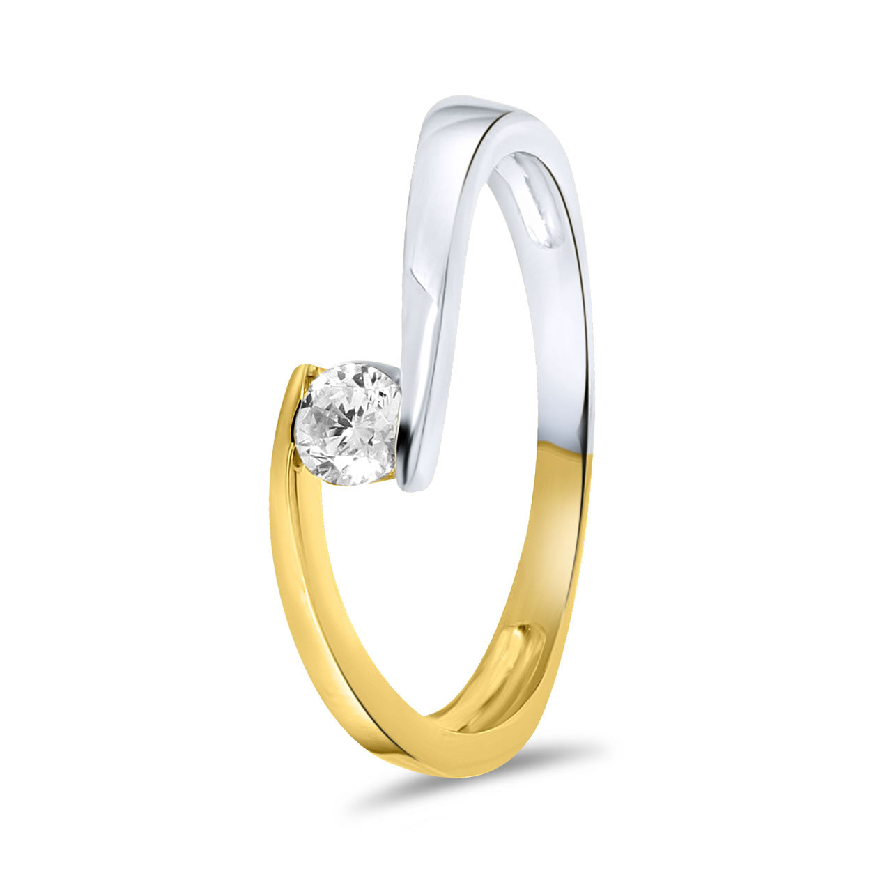 Inel bicolor din colectia Gold by Siebel. Inelul este jumatate din aur alb si jumatate din aur galben. Un zirconiu este atasat in fata.