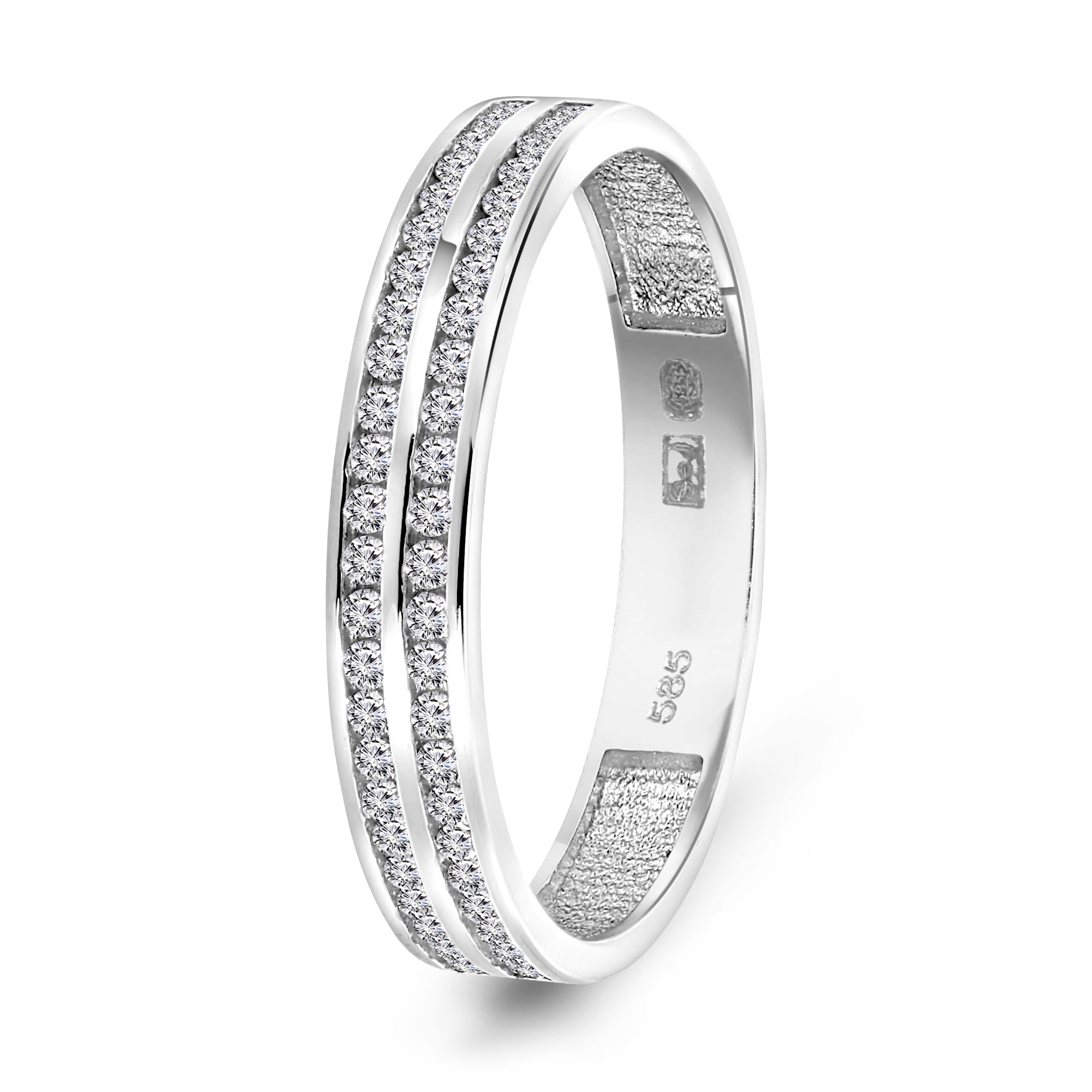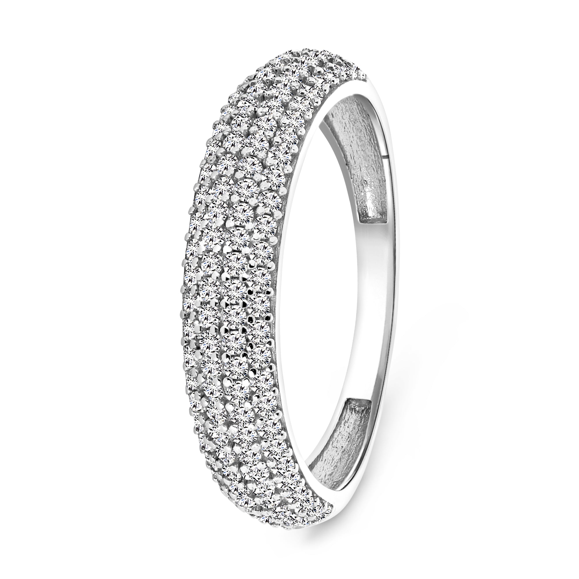 Inel din aur alb de 14 karate. Inelul este fixat cu 48 de pietre de zirconiu. Asociati-l cu un inel delicat de aur alb pentru un aspect unic.