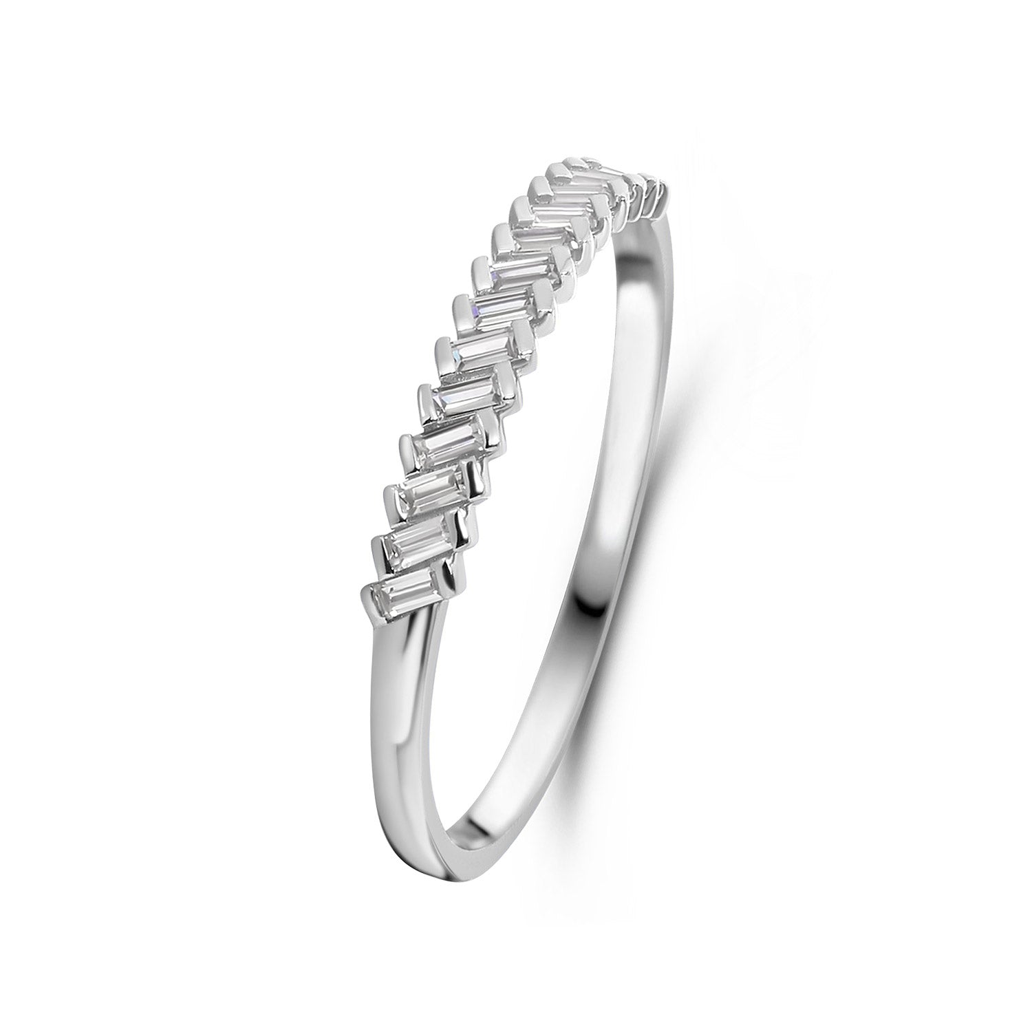 Inel din aur alb din colectia Gold by Siebel. Fabricat din aur alb de 14 karate, inelul este inscris cu 14 pietre uimitoare din zirconiu taiate in bagheta. Acest inel se asorteaza frumos cu alte bijuterii din colectie.