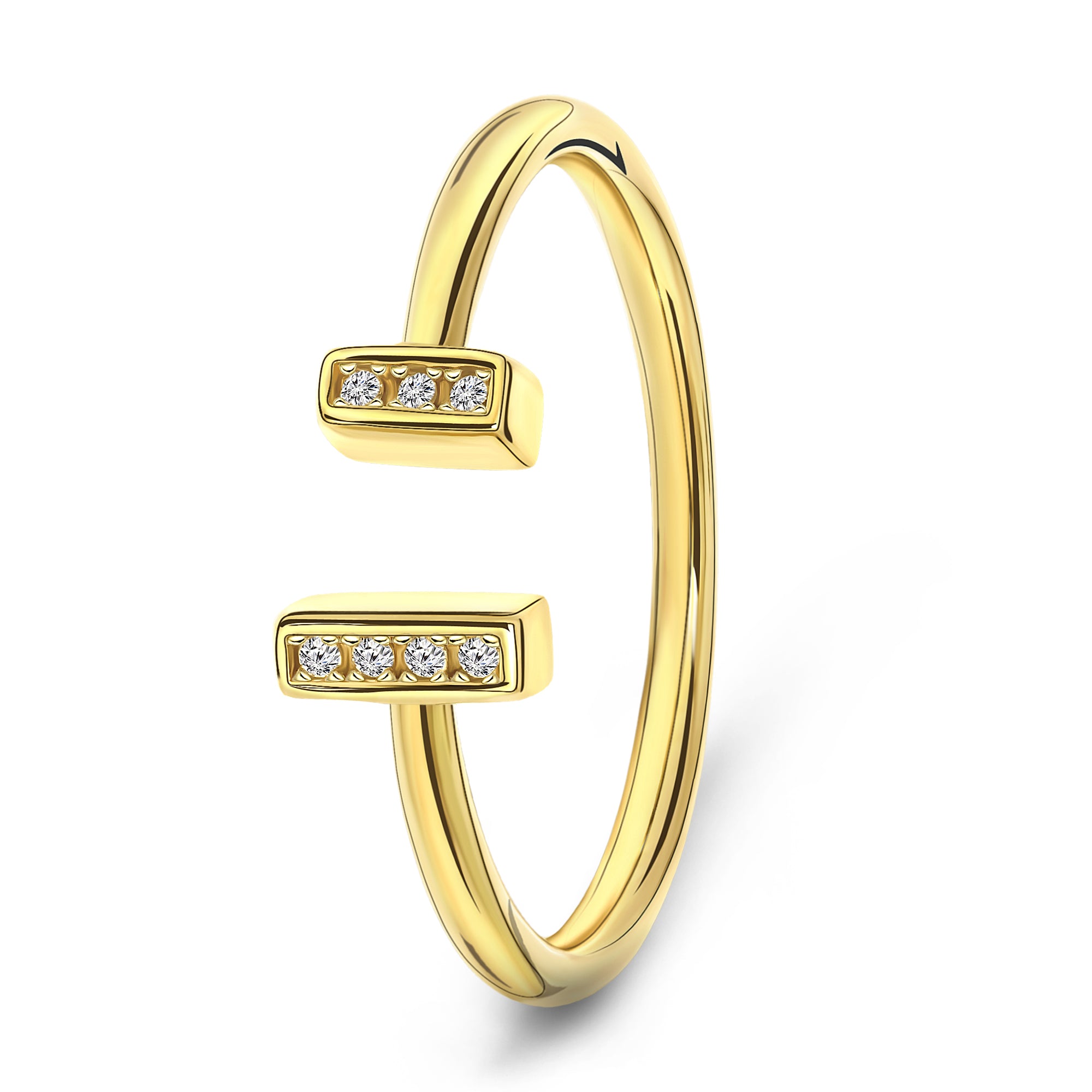 Inel din aur galben din colectia Gold by Siebel. Inelul are o deschidere cu sapte pietre de zirconiu.