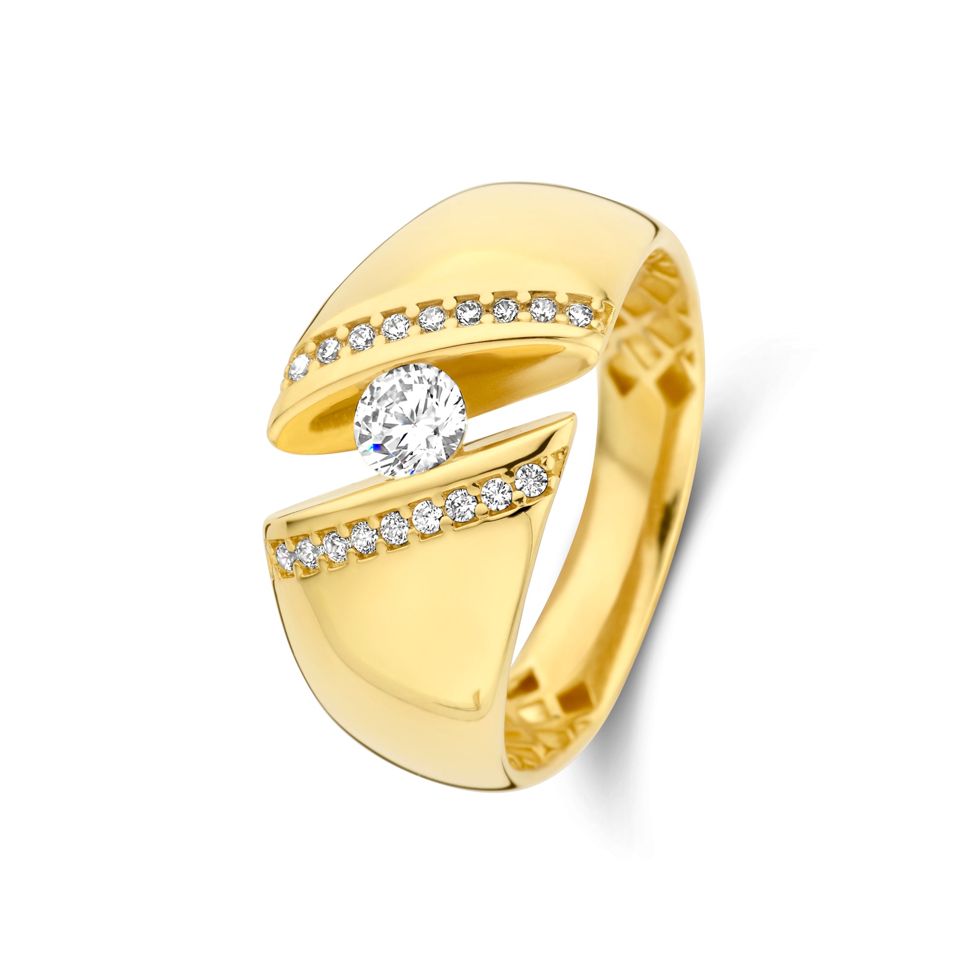 Inel din aur galben de 14 karate din colectia Gold by Siebel. Inelul este fixat cu o singura piatra de zirconiu.