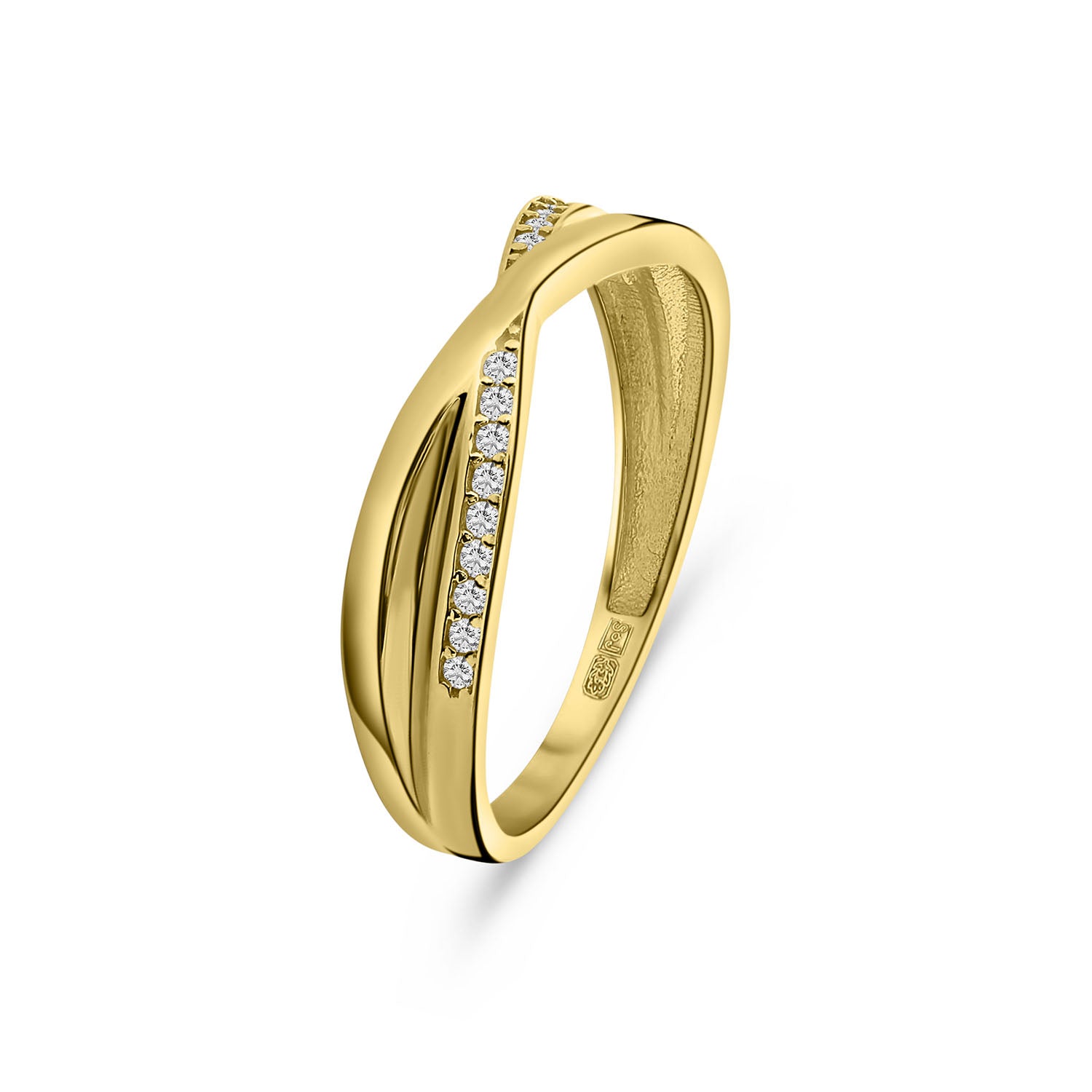 Inel din aur galben cu zirconiu din colectia Gold by Siebel. Fabricat din aur galben de 14 karate, inelul este sertat cu 18 pietre uimitoare din zirconiu. Asociati-l cu alte bijuterii din colectie pentru a va completa look-ul.