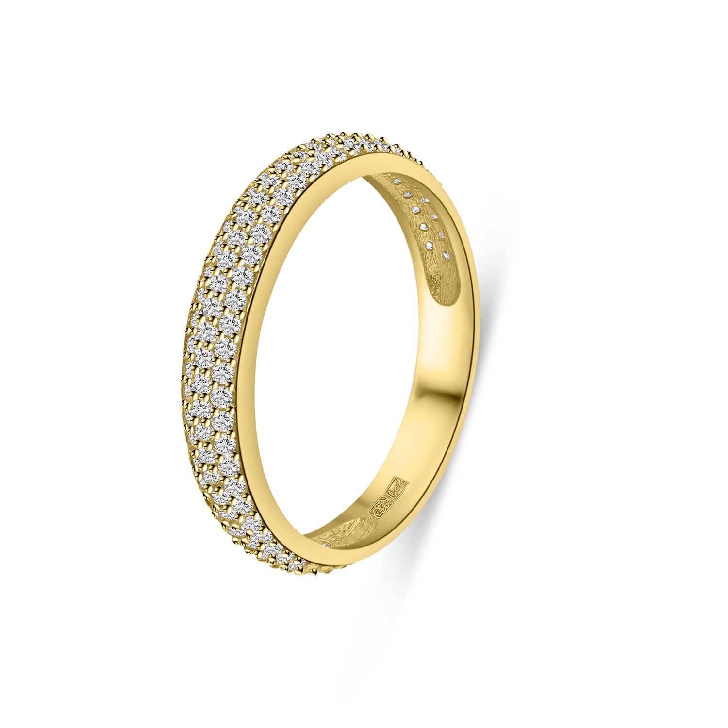 Inel din aur galben de 14 karate din colectia Gold by Siebel. Cele 116 pietre mici de zirconiu fac acest inel elegant si atemporal.