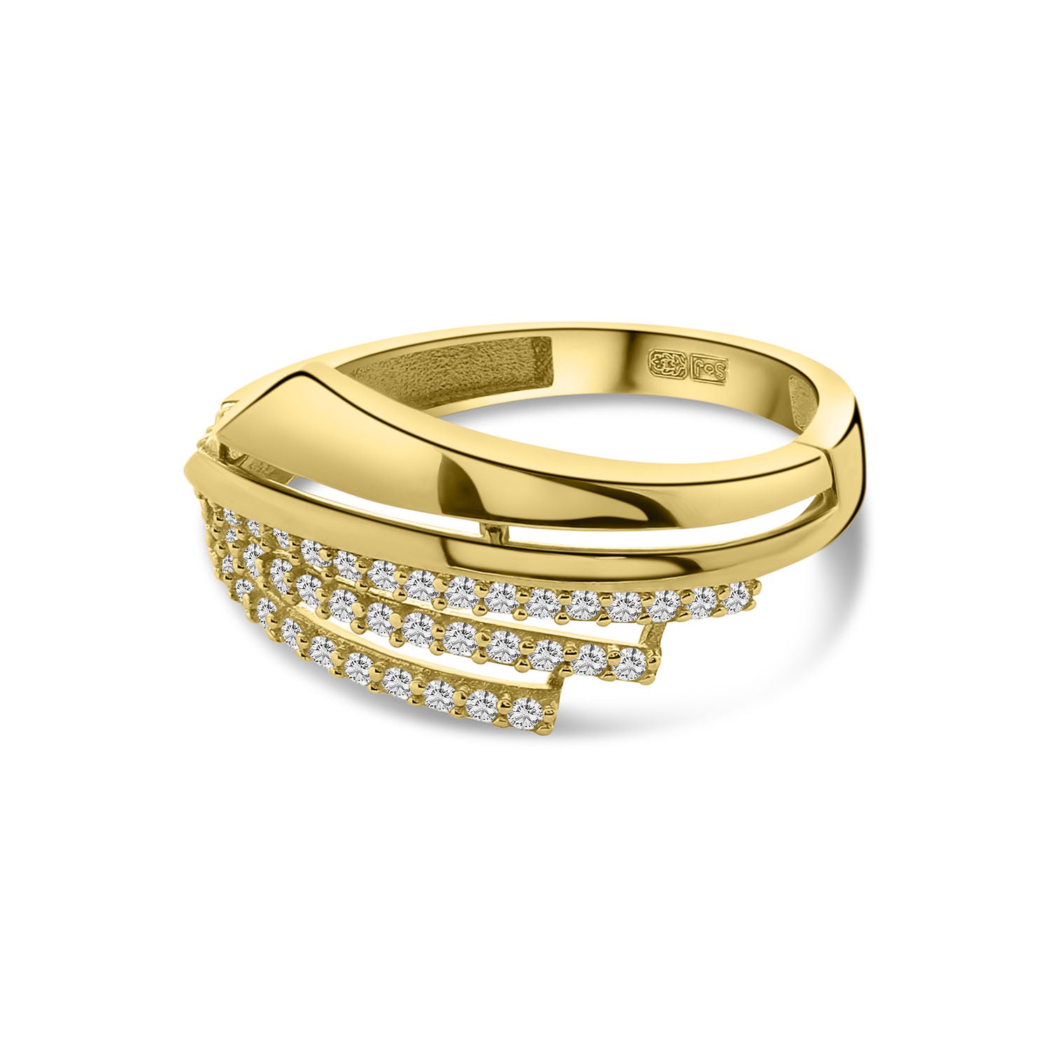 Inel fantezie din aur galben cu zirconiu din colectia Gold by Siebel. Fabricat din aur galben de 14 karate, inelul este sertat cu 58 de pietre uimitoare din zirconiu. Combina inelul cu alte bijuterii din colectie pentru a-ti completa look-ul.