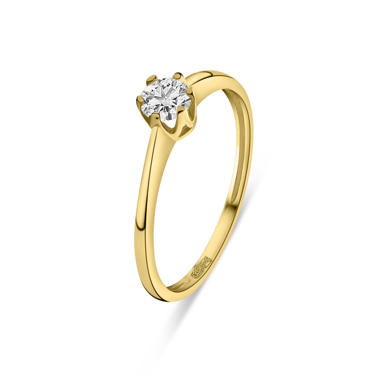 Inel solitar din aur galben cu zirconiu din colectia Gold by Siebel. Fabricat din aur galben de 14 karate, inelul are un zirconiu uimitor. Asociati-l cu bijuterii asortate din colectie pentru a va completa look-ul.