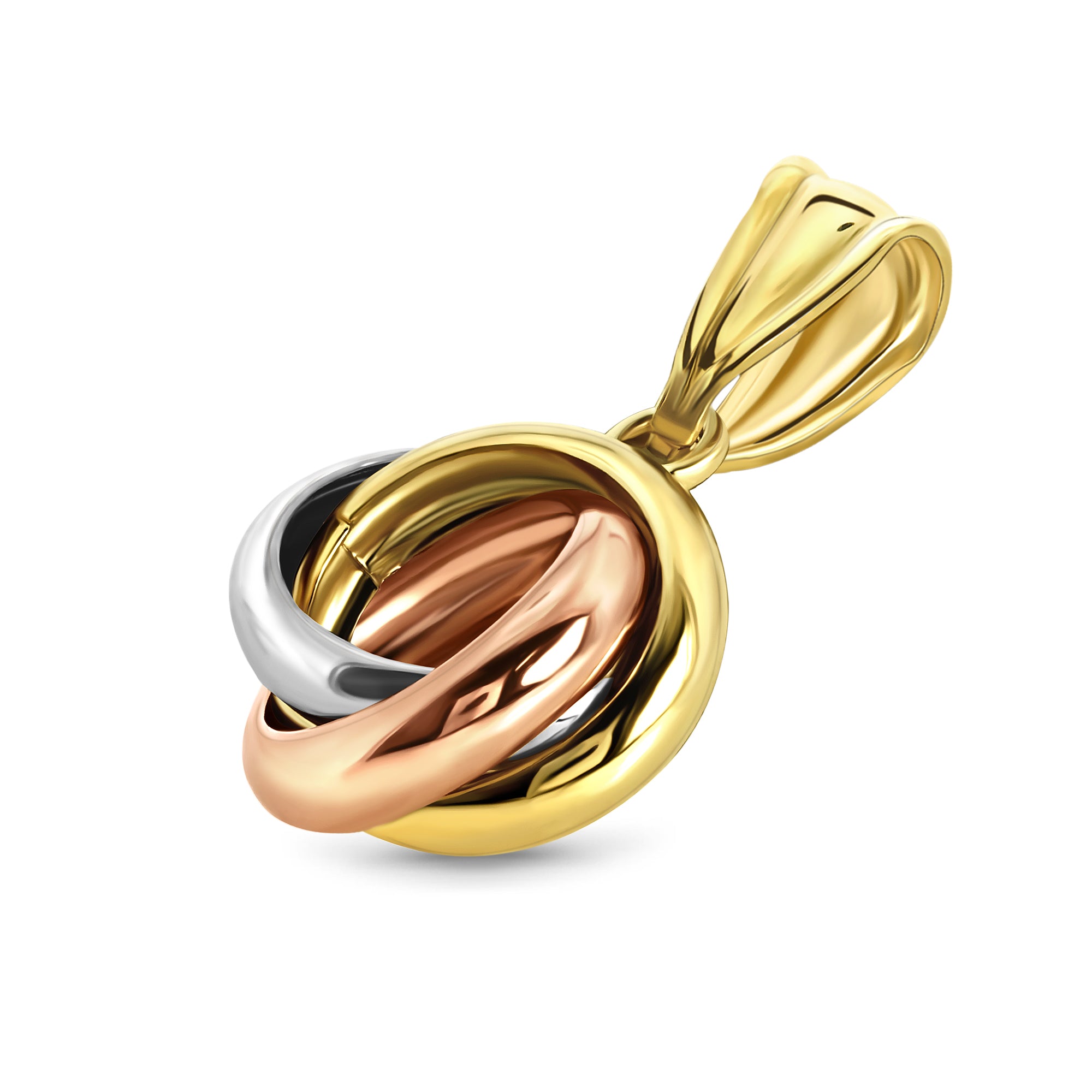 Acest pandantiv de 14 karate din aur de la Siebel este realizat din aur galben, alb si roz. Pandantivul are o lungime totala de 18 mm, iar inelele au o lungime de 9 mm. Asociati pandantivul cu unul dintre colierele noastre pentru a va completa look-ul.