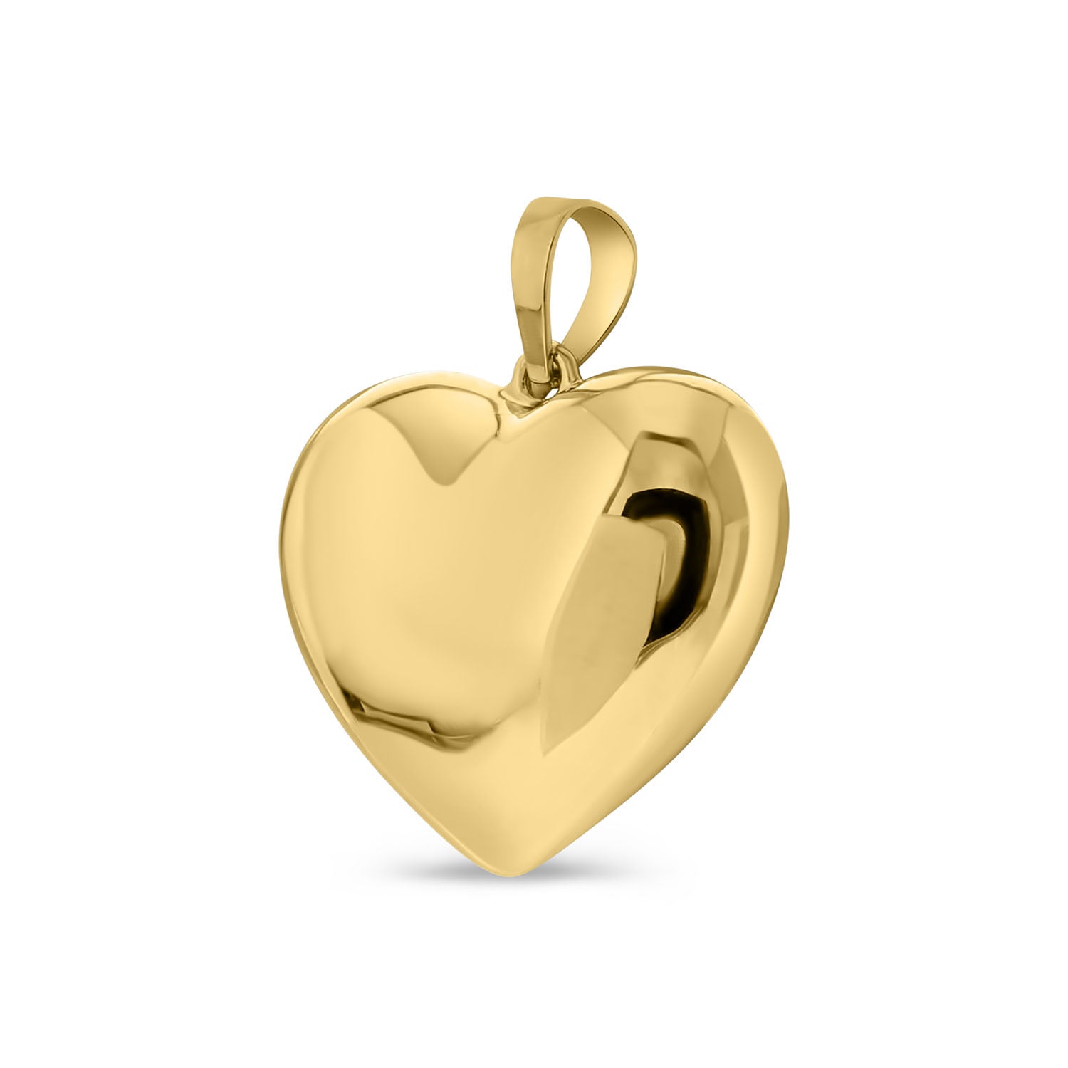 Pandantiv din aur galben de 14 karate cu forma de inima. Atarna-l de un colier frumos pentru un aspect gratios.
