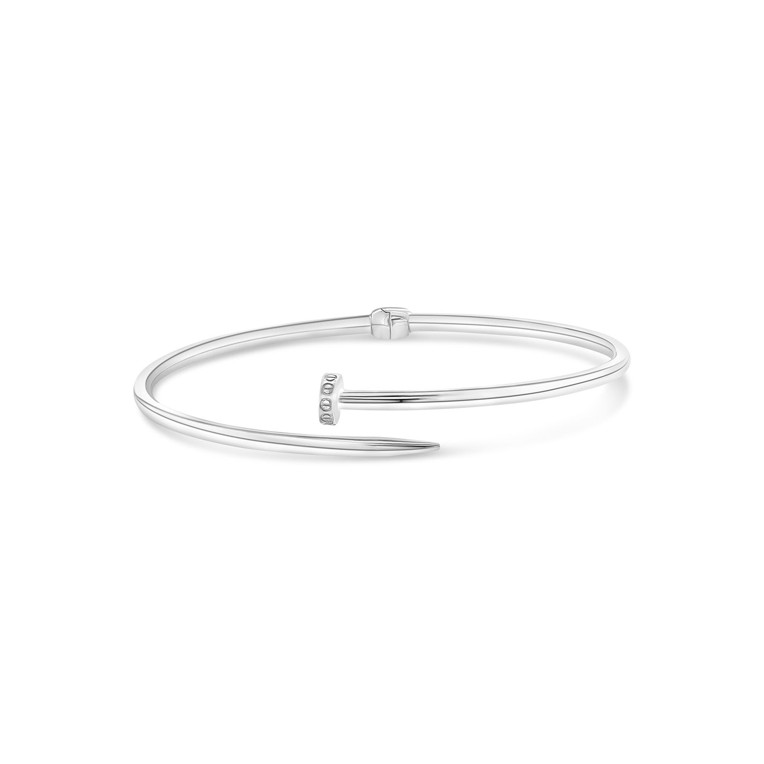 Aceasta bratara din aur alb din colectia Gold by Siebel este realizata din aur alb de 14 karate. Bratara are forma unui cui si prezinta detalii cu suruburi in capul cuiului pentru un aspect modern. Asorteaza aceasta bratara cu alte bijuterii din colectie.