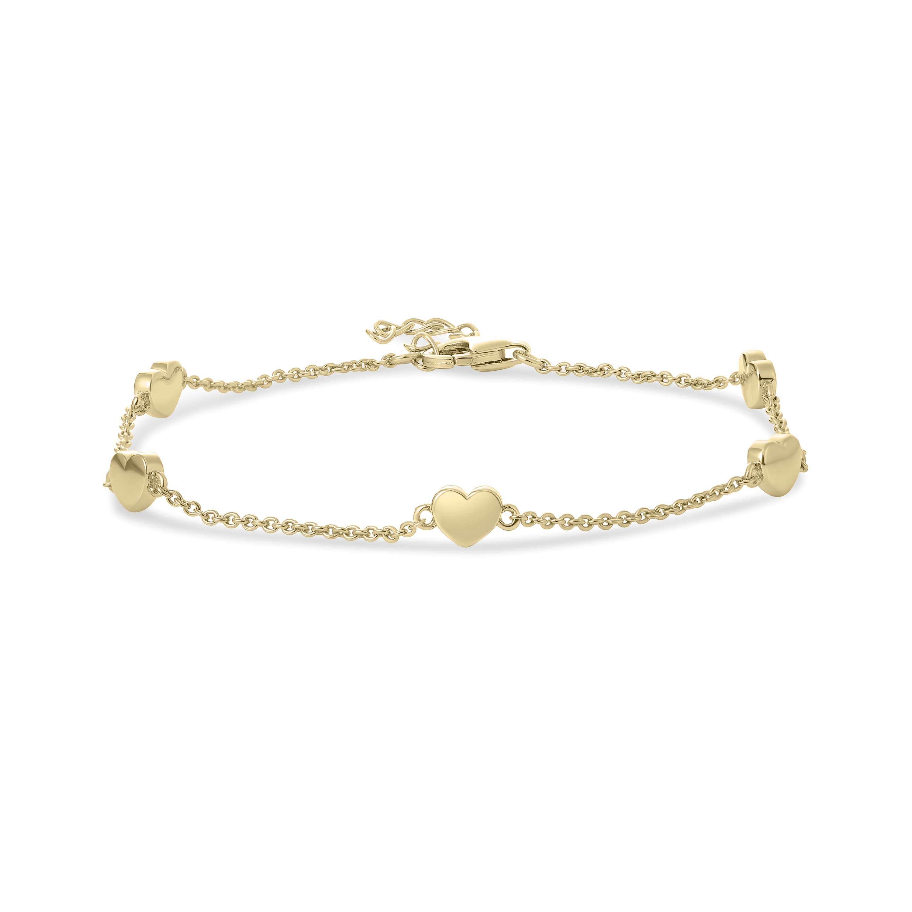 Bratara Lovely Hearts a Elenei este un simbol atemporal al iubirii. Fabricata din argint sterling si placare cu nuante aurii, aceasta bratara delicata straluceste cu inimi subtile care emana eleganta si romantism. Un design gratios care imbunatateste fara efort orice tinuta. Datorita lungimii reglabile de 17 cm + 3 cm, poti purta bratara perfect in jurul incheieturii mainii. O atingere iubitoare pentru orice ocazie.