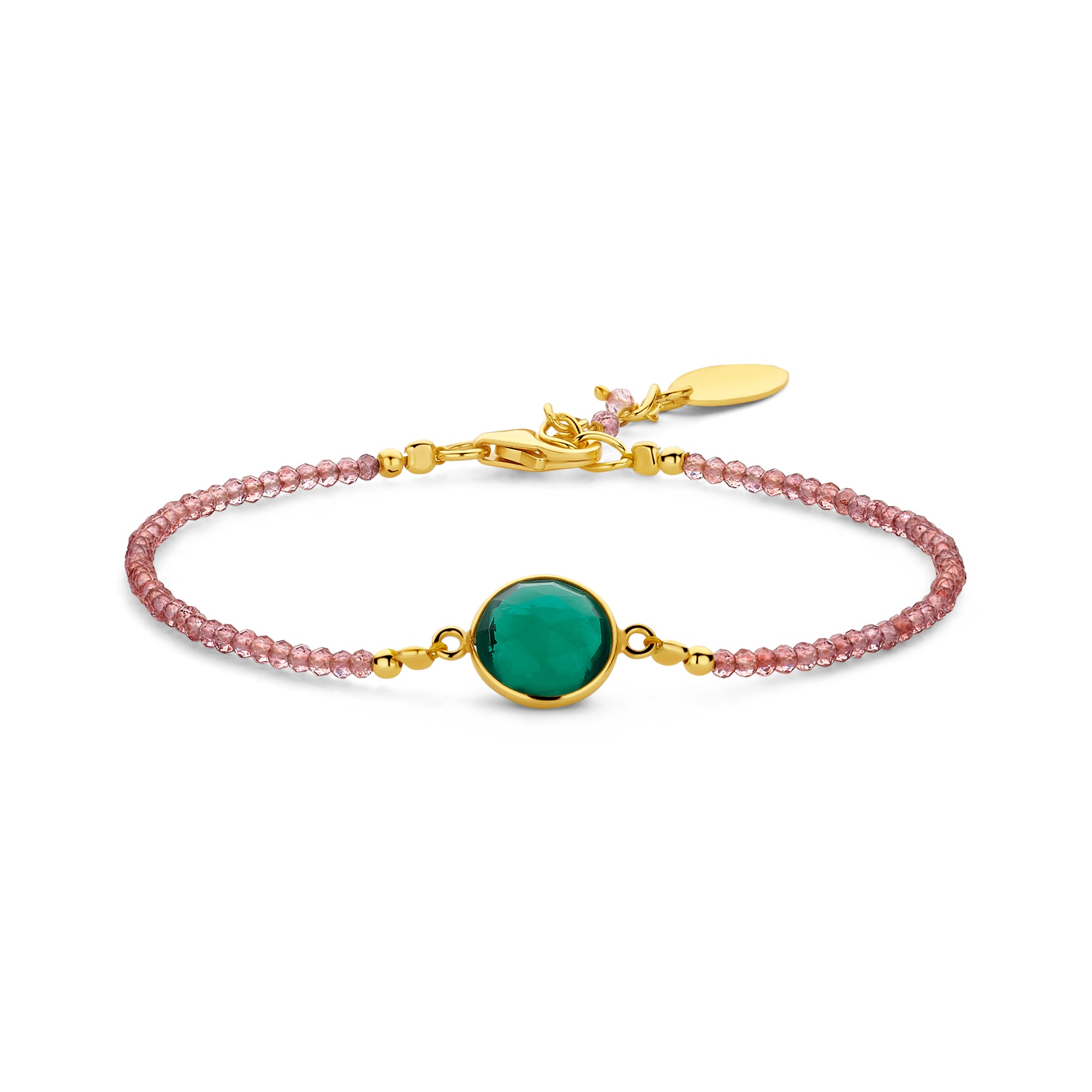 Rafinament si o culoare stralucitoare: aceasta bratara Salvatore este piesa perfecta pentru cei care apreciaza luxul subtil cu o nota jucausa. Fabricata din argint sterlin 925 de inalta calitate si placata cu aur rafinat, acest design adopta o hidro-turmalina verde rotunda ca element atragator. Cureaua, compusa din margele fine de hidro-turmalina roz, creeaza un aspect delicat, feminin, care completeaza orice look. Lungimea reglabila de 18 pana la 21 cm asigura o potrivire perfecta pe orice incheietura a mainii. Poarta-o singura pentru o declaratie subtila sau combin-o cu alte bratari pentru un aspect personal, elegant, stratificat.