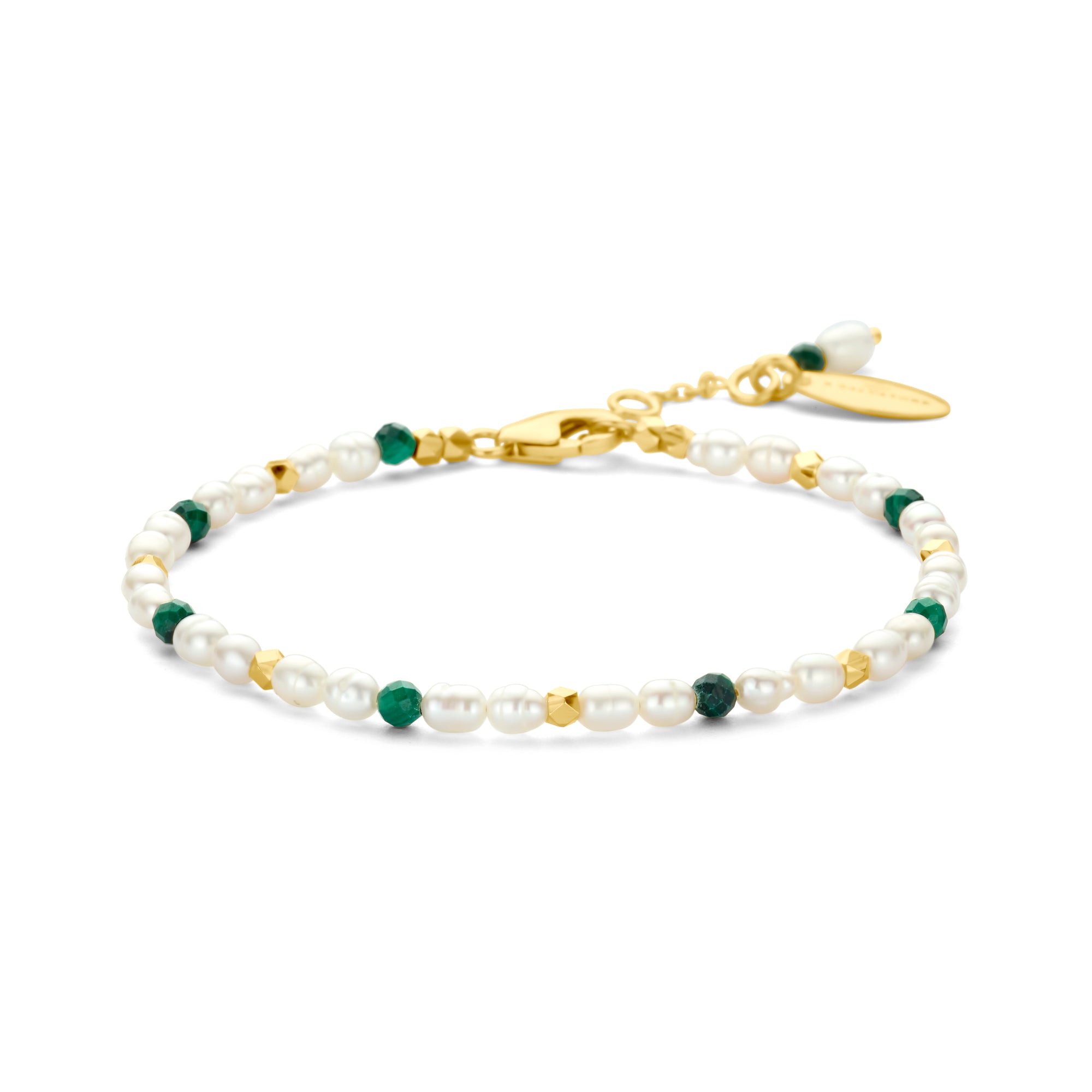 Acest colier cu margele Salvatore Plata iti va pune zambetul pe buze. Fabricate din argint 925 si placate cu aur, margelele sunt realizate din malachit si perle. Asociati bratara cu colierul asortat pentru un look complet!