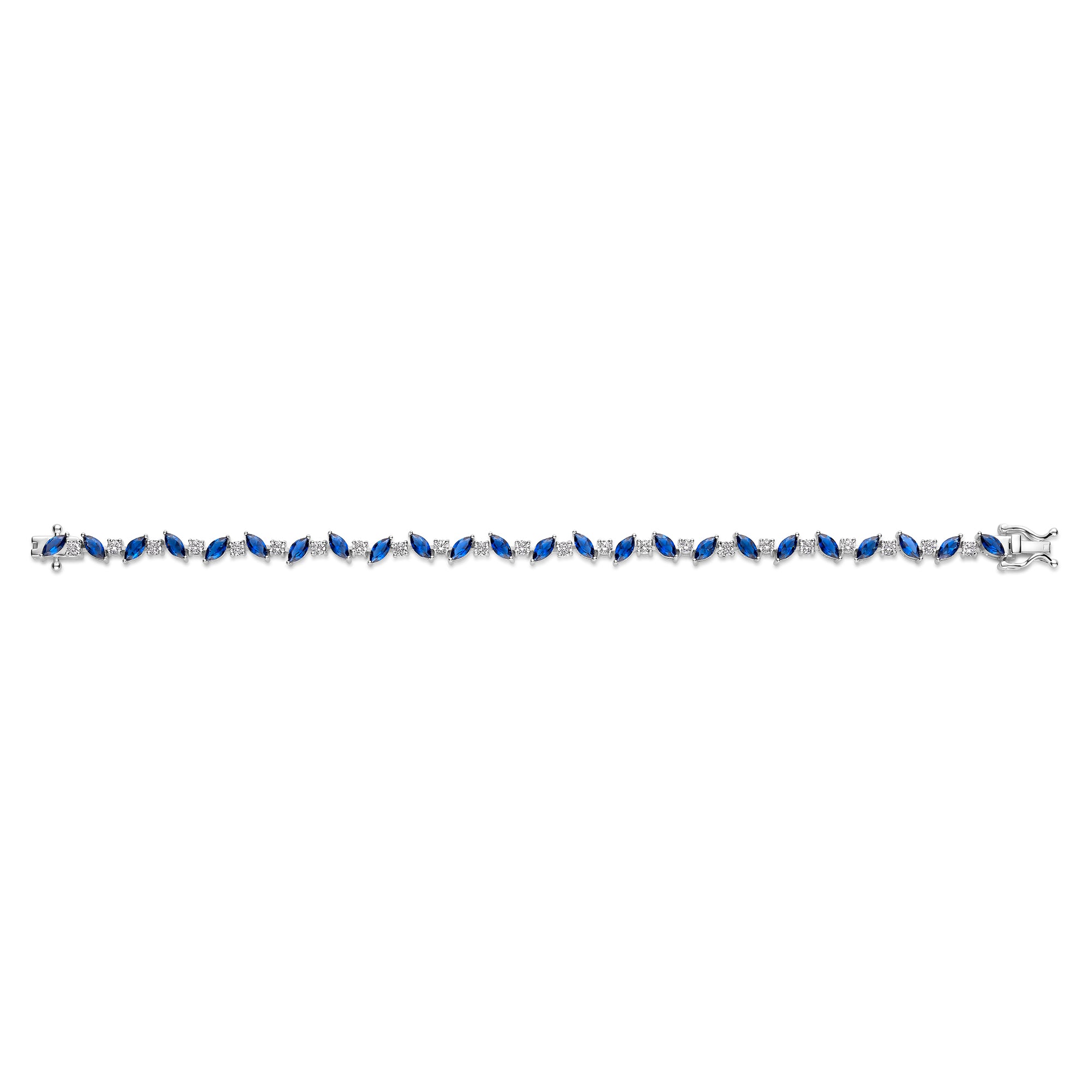 Adaugati o nota de lux colectiei dvs. de bijuterii cu aceasta frumoasa bratara de tenis din argint sterling placat cu rodiu din The Audrey Collection. Bratara este imbracata bogat cu zirconiu cubic albastru si alb stralucitor, adaugand o stralucire subtila la fiecare miscare. Placarea cu rodiu pe argint nu numai ca ii confera o stralucire frumoasa, ci si protejeaza impotriva patarii, permitand bratarii sa-si pastreze aspectul frumos pentru mai mult timp. Avand o lungime de 18,5 cm, aceasta bratara se potriveste confortabil in jurul incheieturii si se inchide usor cu o inchizatoare sigura. Imbinati fara efort aceasta bratara de tenis rafinata cu alte piese din Colectia Audrey pentru un aspect armonios si stilat. Ideal pentru purtarea de zi cu zi sau ca accent elegant pentru ocazii speciale.