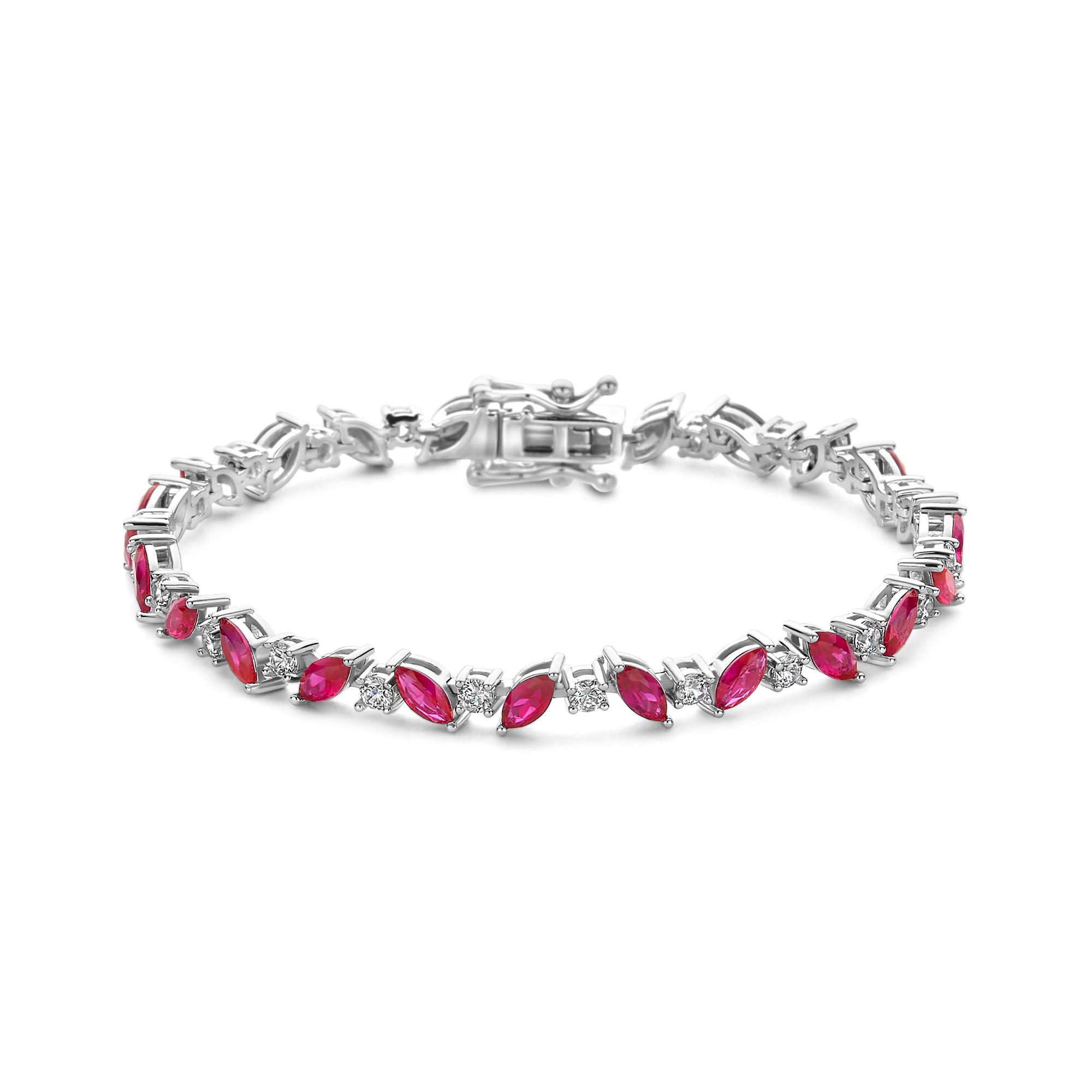 Adaugati o nota de lux colectiei dvs. de bijuterii cu aceasta frumoasa bratara de tenis din argint sterling placat cu rodiu din The Audrey Collection. Bratara este imbracata bogat cu zirconiu cubic rosu si alb stralucitor, adaugand o stralucire subtila la fiecare miscare. Placarea cu rodiu pe argint nu numai ca ii confera o stralucire frumoasa, ci si protejeaza impotriva patarii, permitand bratarii sa-si pastreze aspectul frumos pentru mai mult timp. Avand o lungime de 18,5 cm, aceasta bratara se potriveste confortabil in jurul incheieturii si se inchide usor cu o inchizatoare sigura. Imbinati fara efort aceasta bratara de tenis rafinata cu alte piese din Colectia Audrey pentru un aspect armonios si stilat. Ideal pentru purtarea de zi cu zi sau ca accent elegant pentru ocazii speciale.