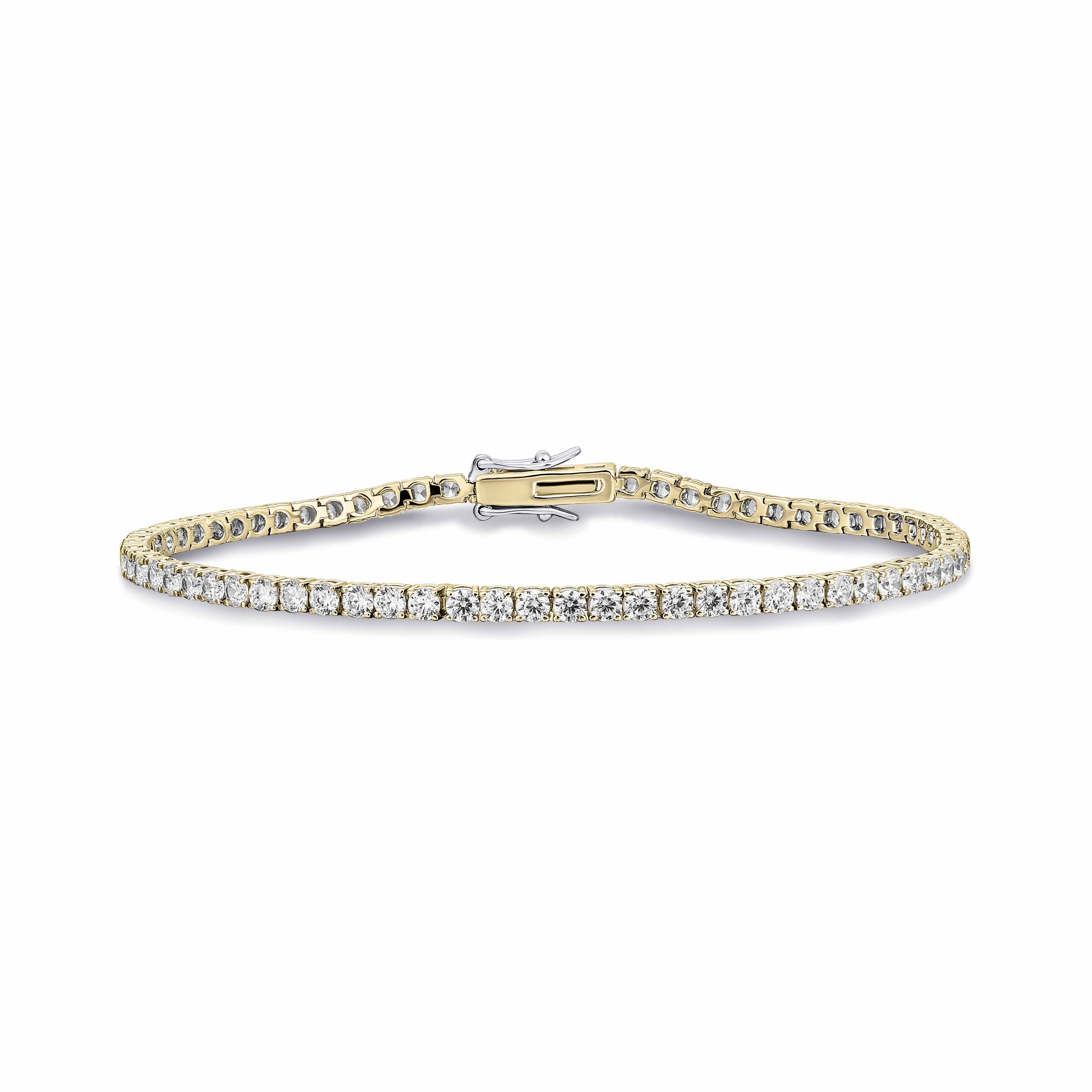 Aceasta bratara eleganta Elena completeaza orice look! Fabricata din argint 925 cu placare cu aur, aceasta piesa emana o eleganta atemporala. Bratara este incarcata cu pietre de zirconiu cubic de 2,5 mm, creand un aspect rafinat si sic. Pentru un plus de siguranta, bratara are o inchizatoare cutie placata cu rodiu cu o prindere de siguranta dubla in forma de opt. Perfect pentru asociere cu alte bijuterii!