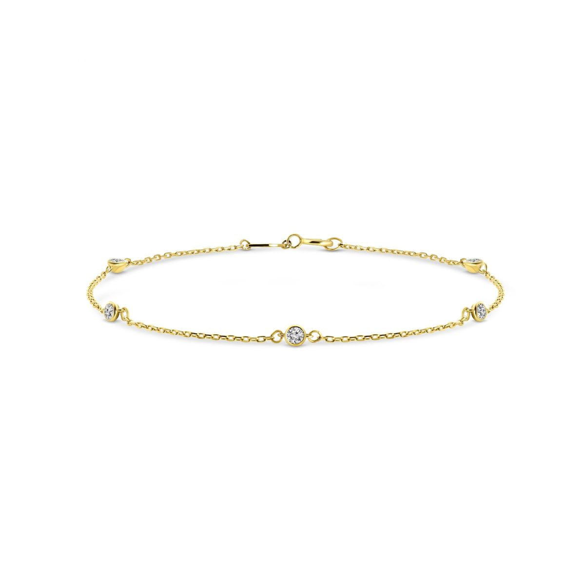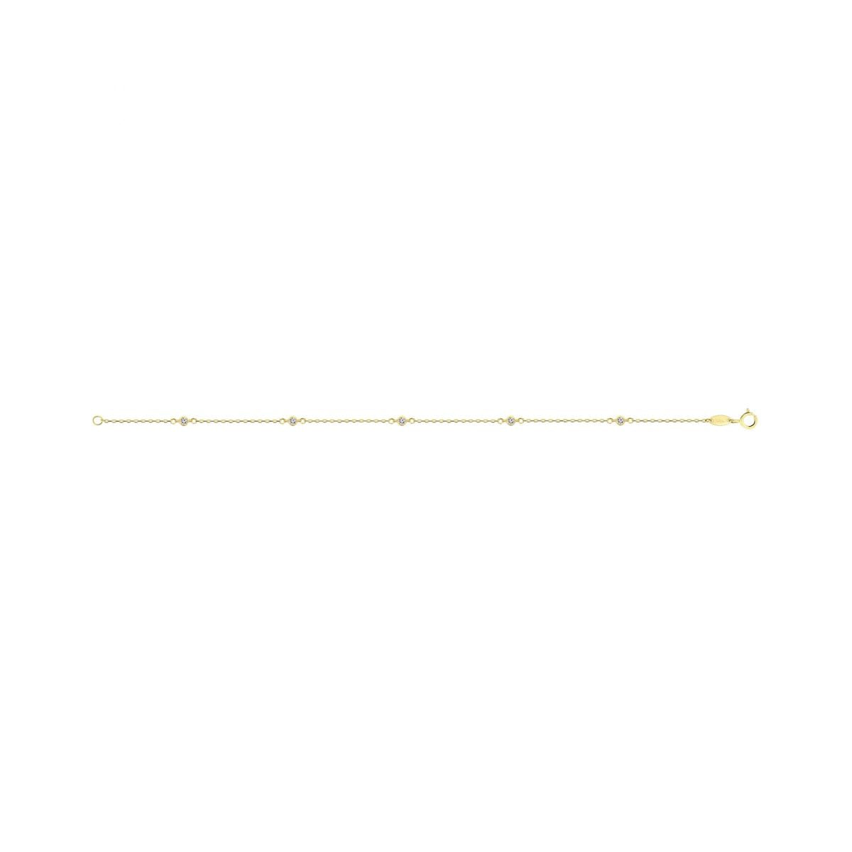 O bratara din aur galben de 14 karate din colectia Valentina. Bratara are zale si un total de cinci setari rotunde, fiecare set cu un zirconiu taiat stralucitor.