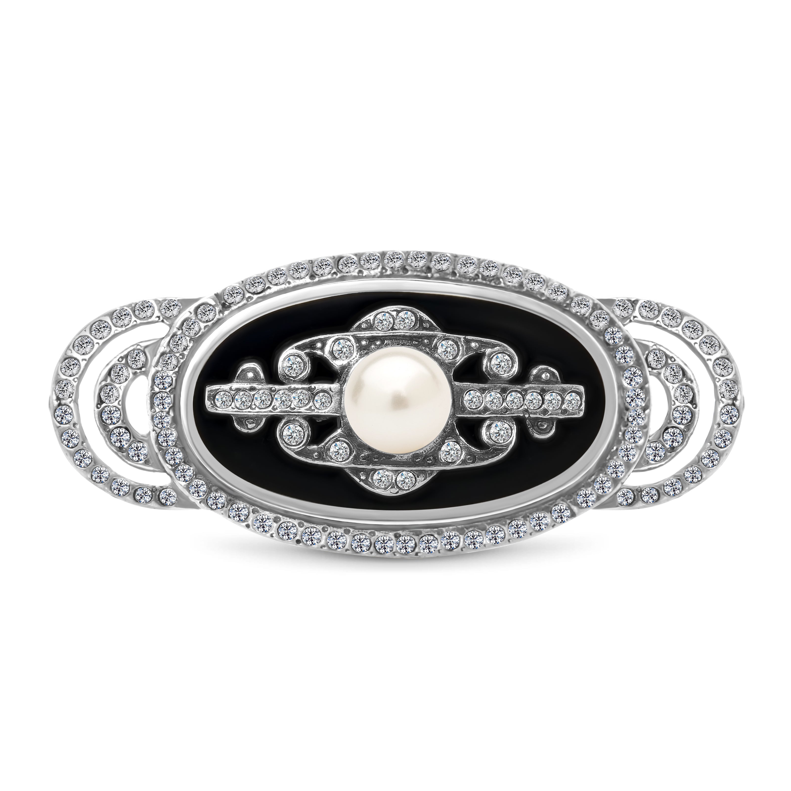 Aceasta frumoasa brosa victoriana de la Retro Classics face parte din colectia Art Deco. Fabricata din argint 925, aceasta brosa clasica prezinta perle sintetice si cristale Swarovski stralucitoare. Aceasta brosa uluitoare iti va completa tinuta!