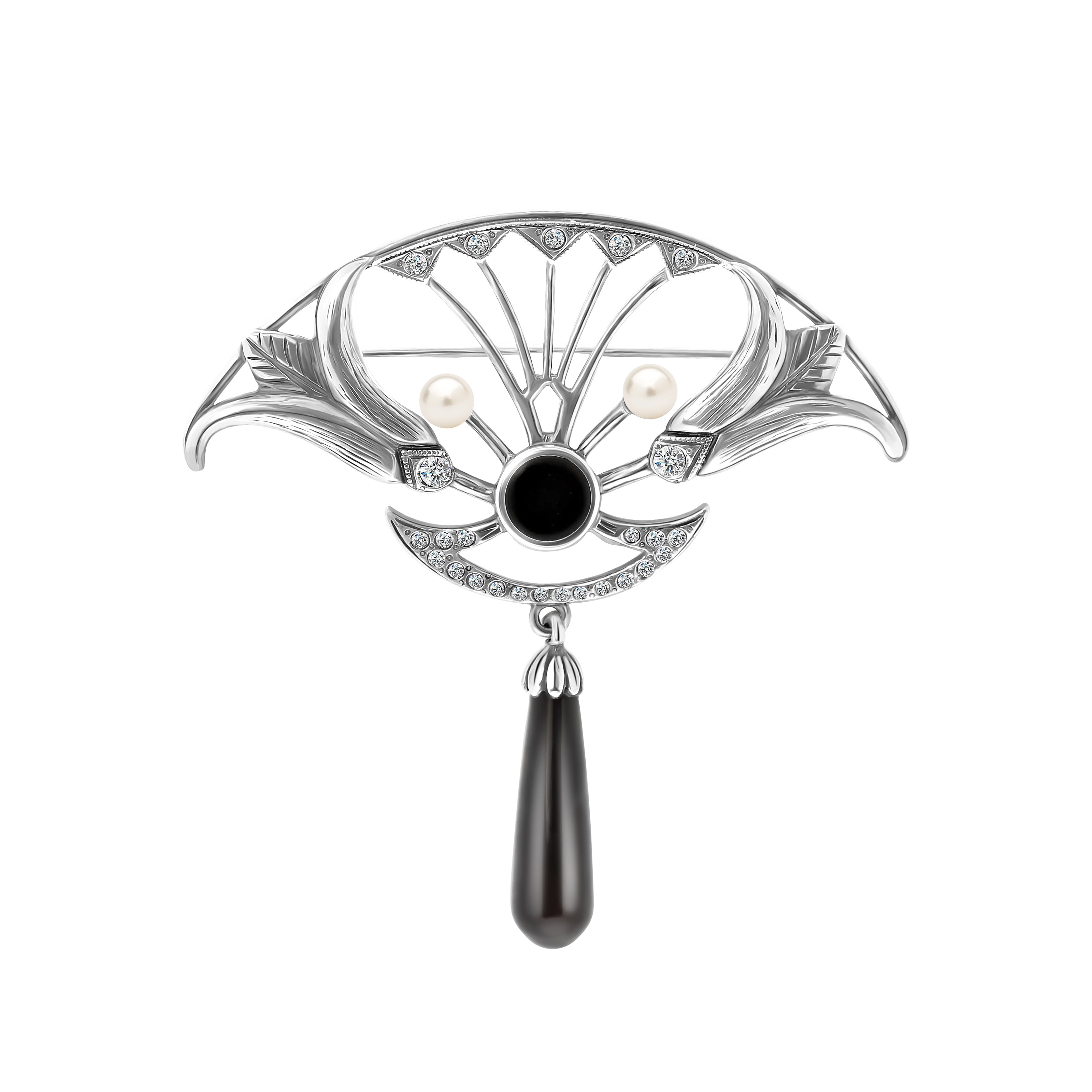Aceasta frumoasa brosa victoriana de la Retro Classics face parte din colectia Art Deco. Realizata din argint sterling 925, aceasta brosa clasica prezinta perle sintetice si onix negru. Aceasta brosa uimitoare iti va completa tinuta!