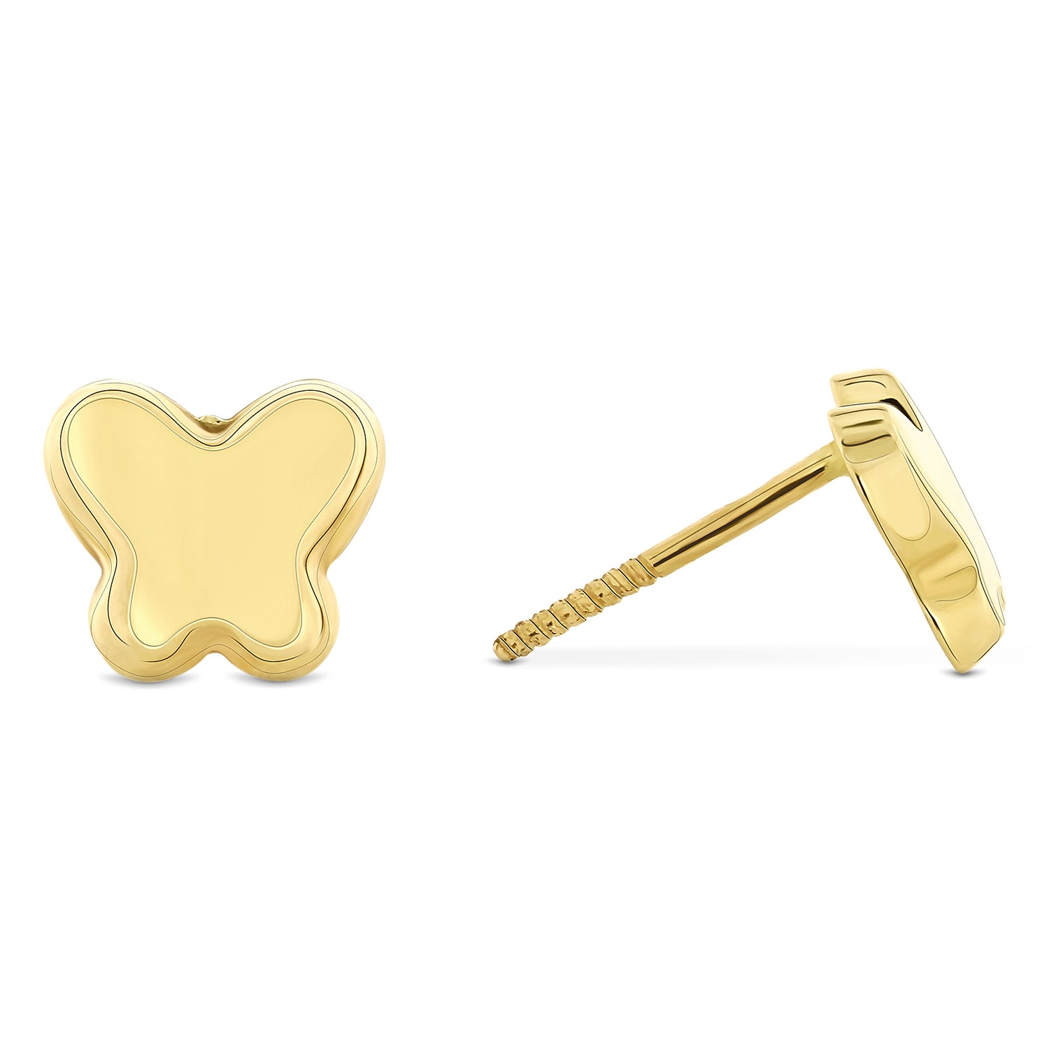 Acesti cercei adorabili in forma de fluture sunt din colectia By Nikki. Fabricate din aur galben de 14 karate, au un diametru de 6,5 mm. Cerceii dispun de o inchizatoare de siguranta pentru o potrivire sigura si confortabila. Datorita inchiderii cu surub, stifturile aurii nu vor fi prea stranse, iar designul inteligent le impiedica sa impinga gatul, facandu-le perfecte pentru dormit. Un plus distractiv si sigur la colectia de bijuterii pentru orice copil!