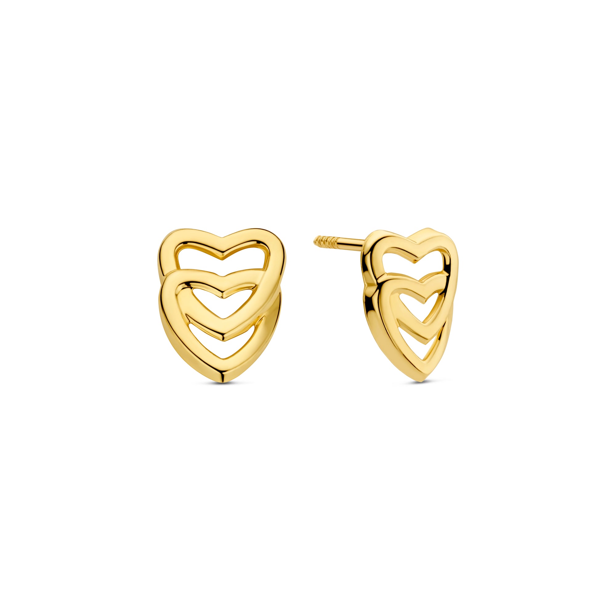 Acesti cercei tip tip By Nikki creeaza un sentiment de a fi iubit. Fabricate din aur galben de 14 karate, aceste stifturi in forma de inima au o stralucire frumoasa. Se deschid si se inchid cu o clema cu surub, asigurandu-se ca raman in siguranta la loc si reducand riscul de pierdere.