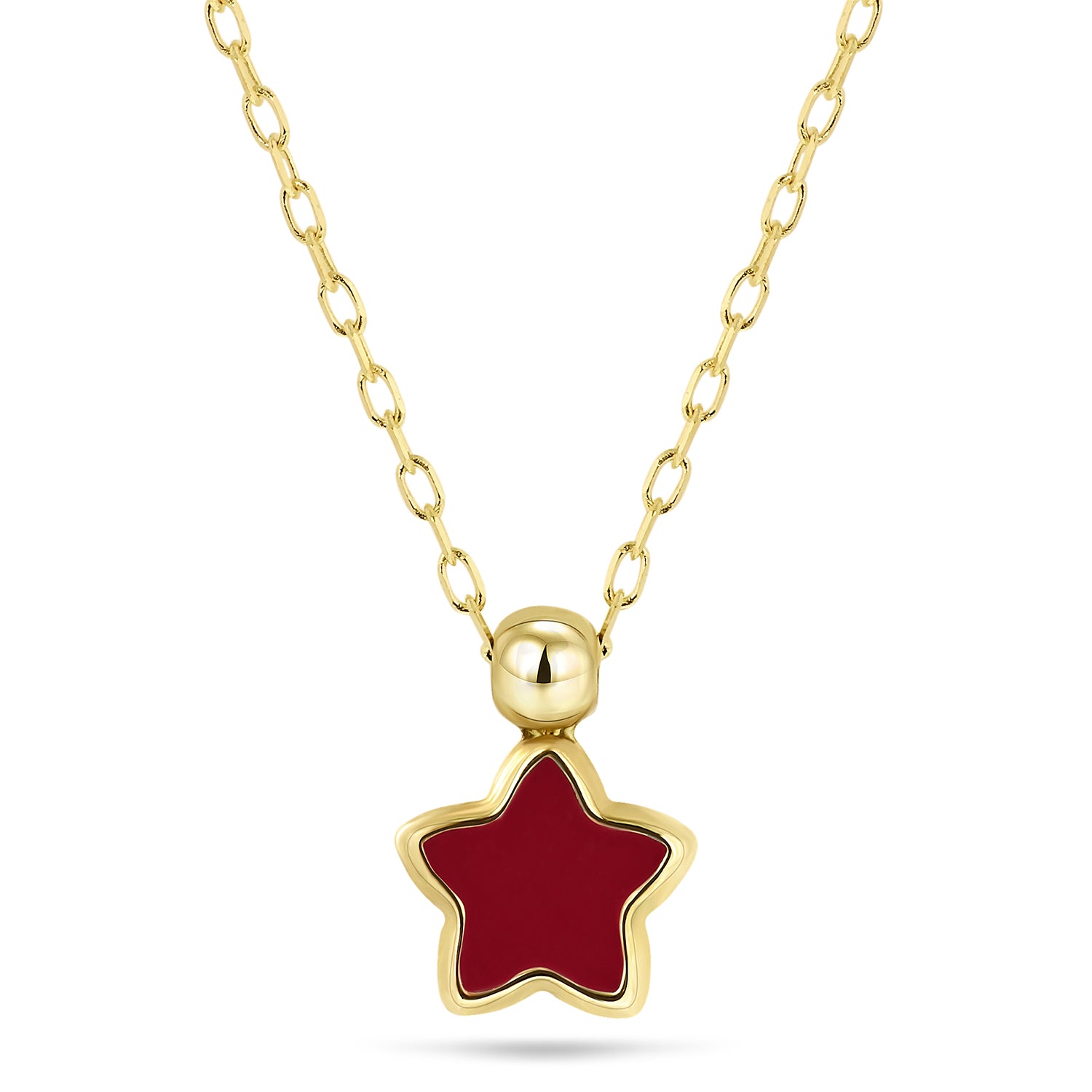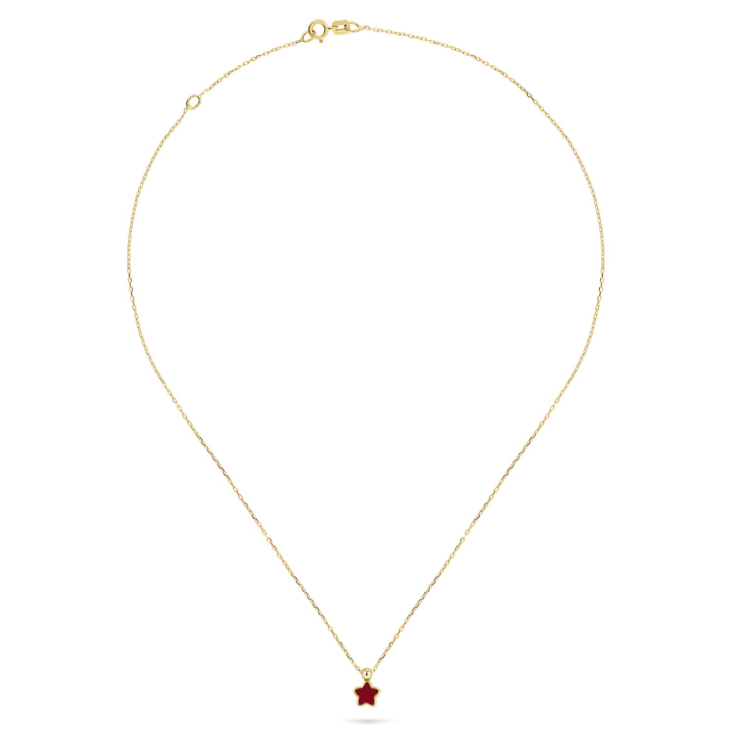 Acest colier adorabil din colectia By Nikki este special conceput pentru fete. Fabricat din aur galben de 14 karate, are un pandantiv jucaus in forma de stea rosie. Lungimea reglabila, de la 35 la 38 cm, asigura o potrivire confortabila. Combinati-l cu cerceii nostri in forma de stea pentru un aspect radiant si complet!