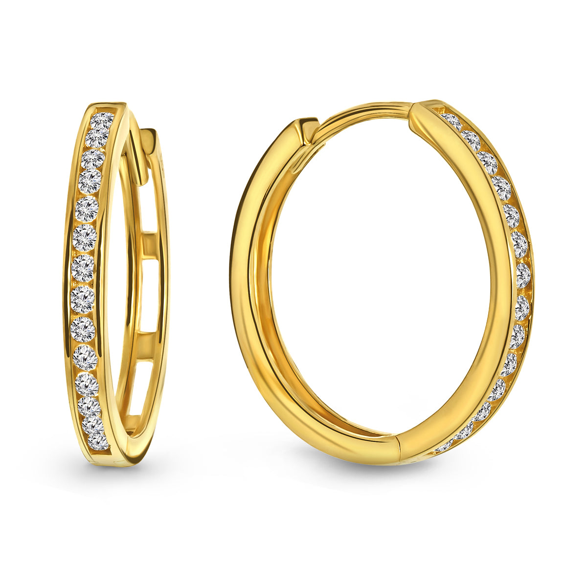 Cercei din aur galben din colectia Gold by Siebel. Cerceii sunt fixati cu un singur rand de zirconiu in fata.