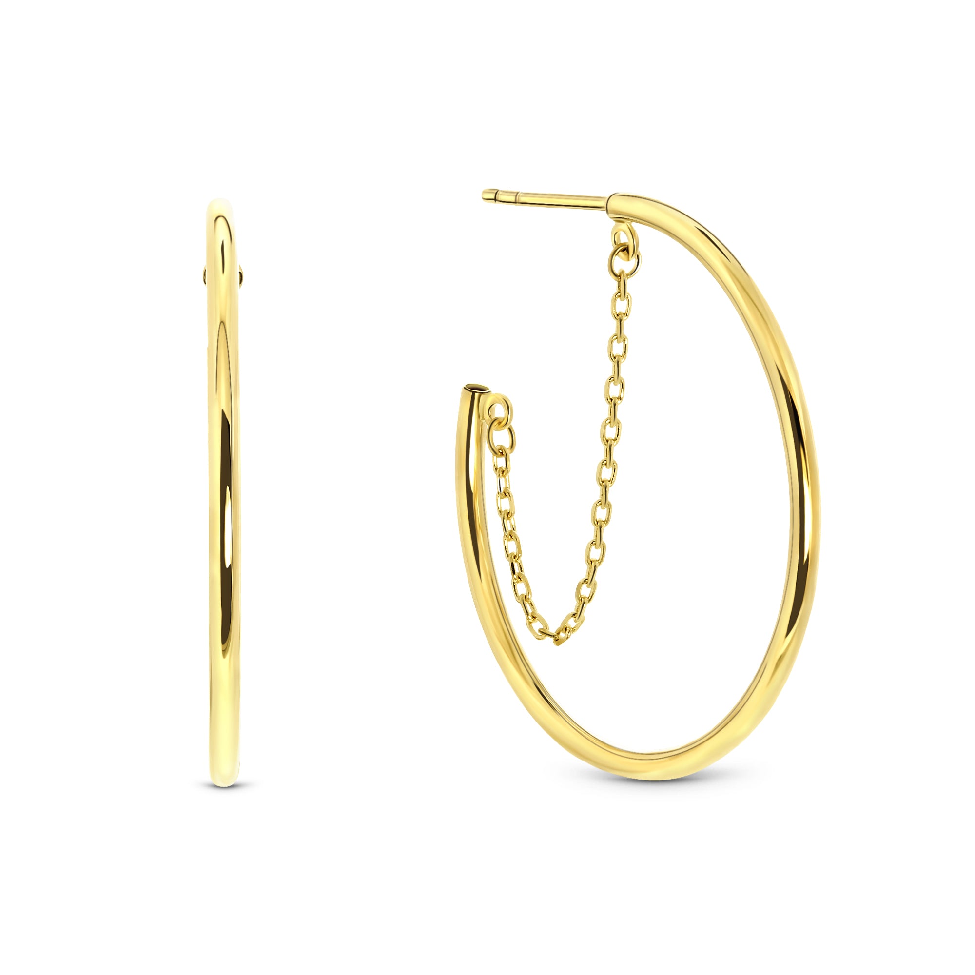 Cercei din aur galben de 14 karate din colectia Gold by Siebel. Cerceii au o bratara cu zale care se conecteaza de la o parte la cealalta a cercelului.