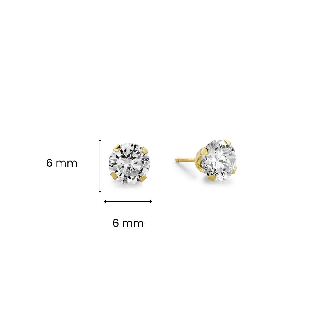 Cercei stud din aur galben din colectia Lior. Acesti cercei cu diametrul de 6 mm sunt impodobiti cu zirconiu.