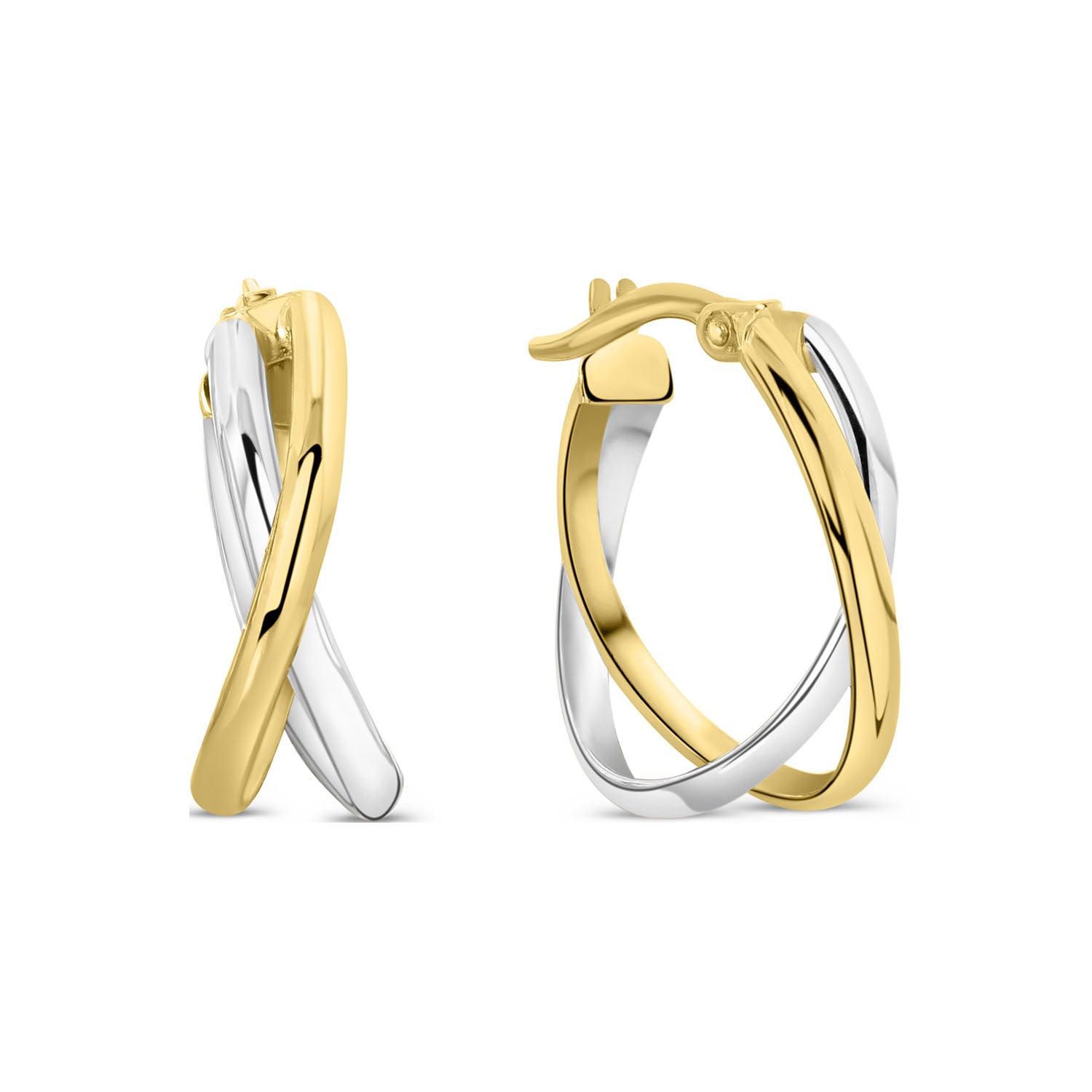 Cercei fantezie bicolor din colectia Twinline. Realizati din aur galben si alb de 14 karate, acesti cercei au un finisaj lustruit. Combina-le cu bijuterii asortate din colectie pentru a completa aspectul.