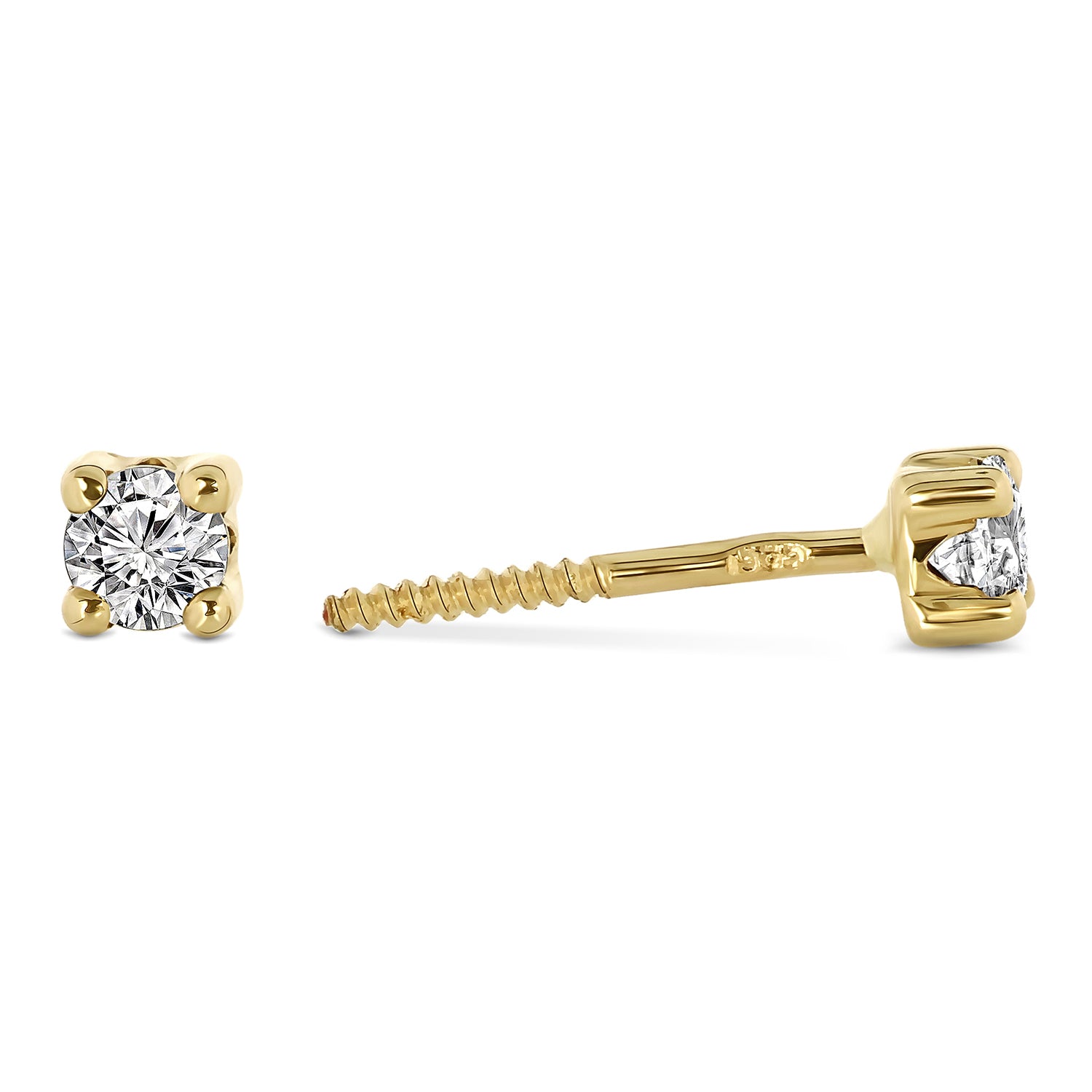 Cercei tip stift din aur galben de 14 karate din colectia By Nikki. Ambii cercei sunt setati cu zirconiu.
