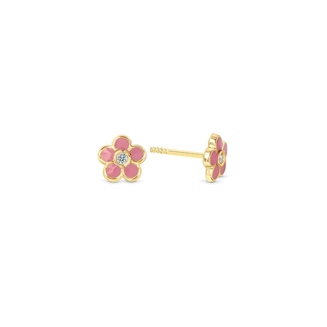 Acesti cercei tip tip By Nikki iti vor pune zambetul pe buze! Fabricate din aur galben de 14 karate, sunt impodobite cu smalt roz si o piatra de zirconiu stralucitoare. Cerceii se deschid si se inchid cu o inchidere cu surub, asigurandu-se ca raman in siguranta la locul lor si reducand riscul de pierdere.