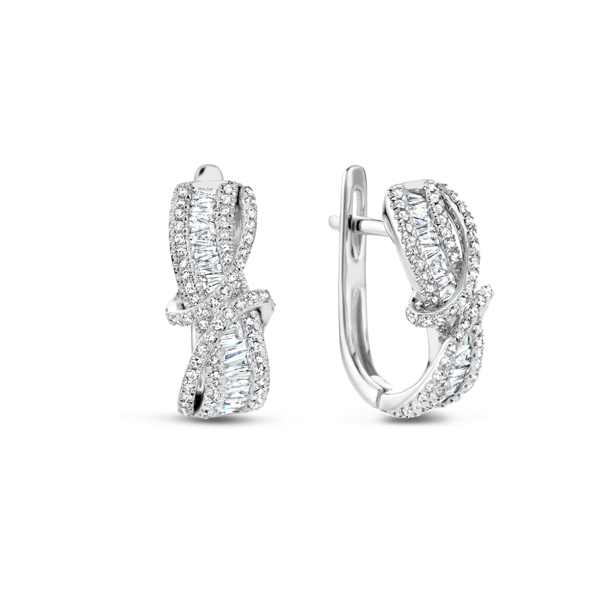 Cercei clip-on din aur alb cu diamante din colectia Ice. Confectionati din aur alb de 14 karate, acesti cercei sunt impodobiti cu bagheta si diamante taiate stralucitor. Combinati cerceii cu bijuteriile asortate pentru a completa setul.