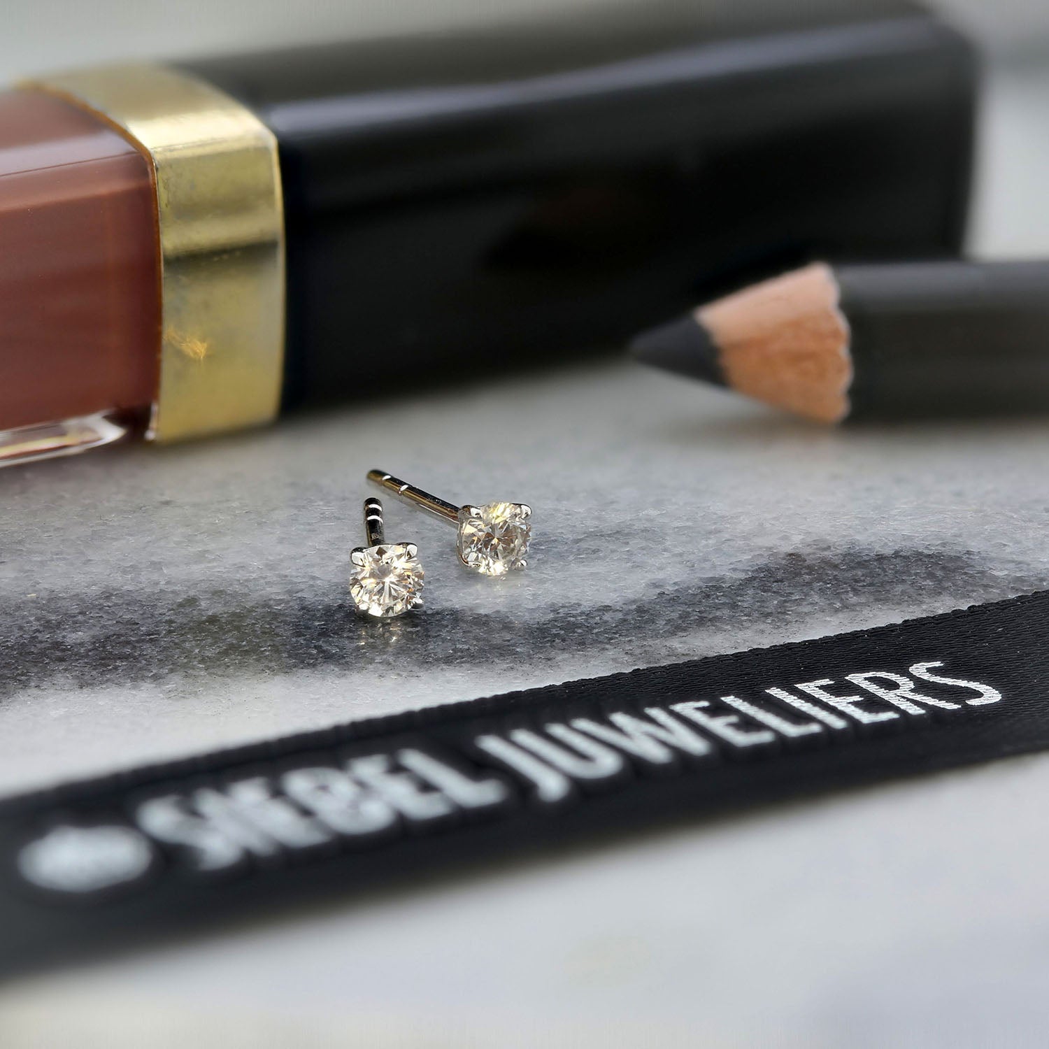 Acesti cercei tip stift din aur alb de 14 karate de la Siebel sunt din colectia Millennium. Sunt sertate cu diamante frumoase, taiate stralucitor, cultivate in laborator.