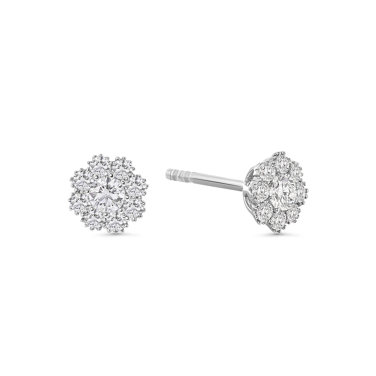 Cercei cu flori din aur alb cu diamante cultivate in laborator din colectia Millennium. Fabricate din aur alb de 14 karate, aceste stifturi sunt sertate cu 18 diamante uimitoare, taiate stralucitor, cultivate in laborator. Asociati acesti cercei cu alte bijuterii din colectie pentru a va completa look-ul.
