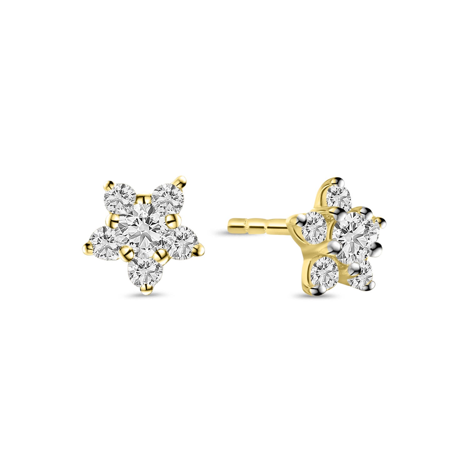 Acesti cercei cu surub din aur galben si zirconiu din colectia Gold by Siebel stralucesc intr-un design floral rafinat. Fiecare surub prezinta un singur zirconiu central inconjurat de sase zirconii mai mici, creand un ansamblu radiant de sapte pietre. Stralucirea calda a aurului galben de 14 karate contrasteaza perfect cu stralucirea intensa a pietrelor, creand un aspect clasic, feminin. Ideali pentru cei care cauta un accent elegant, cu o nota jucausa. O piesa stilata care iese in evidenta in fiecare zi sau pentru o ocazie speciala.