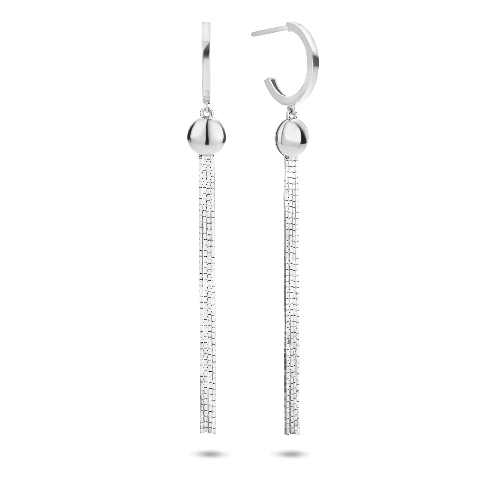 Cercei din aur alb de 14 karate din colectia Gold by Siebel. Cerceii au un disc rotund si un lant cu o veriga venetiana. Fiecare cercel vine cu patru lanturi. Lungimea fiecarui cercel este de 6 cm, latimea este de 1,46 mm, iar grosimea este de 1,45 mm.