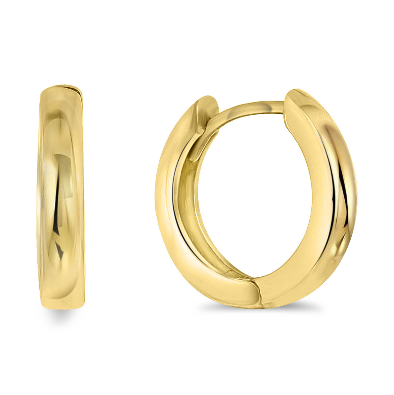 Cercei de aur din colectia Gold by Siebel. Cerceii au 2 mm latime si 14 mm in diametru.