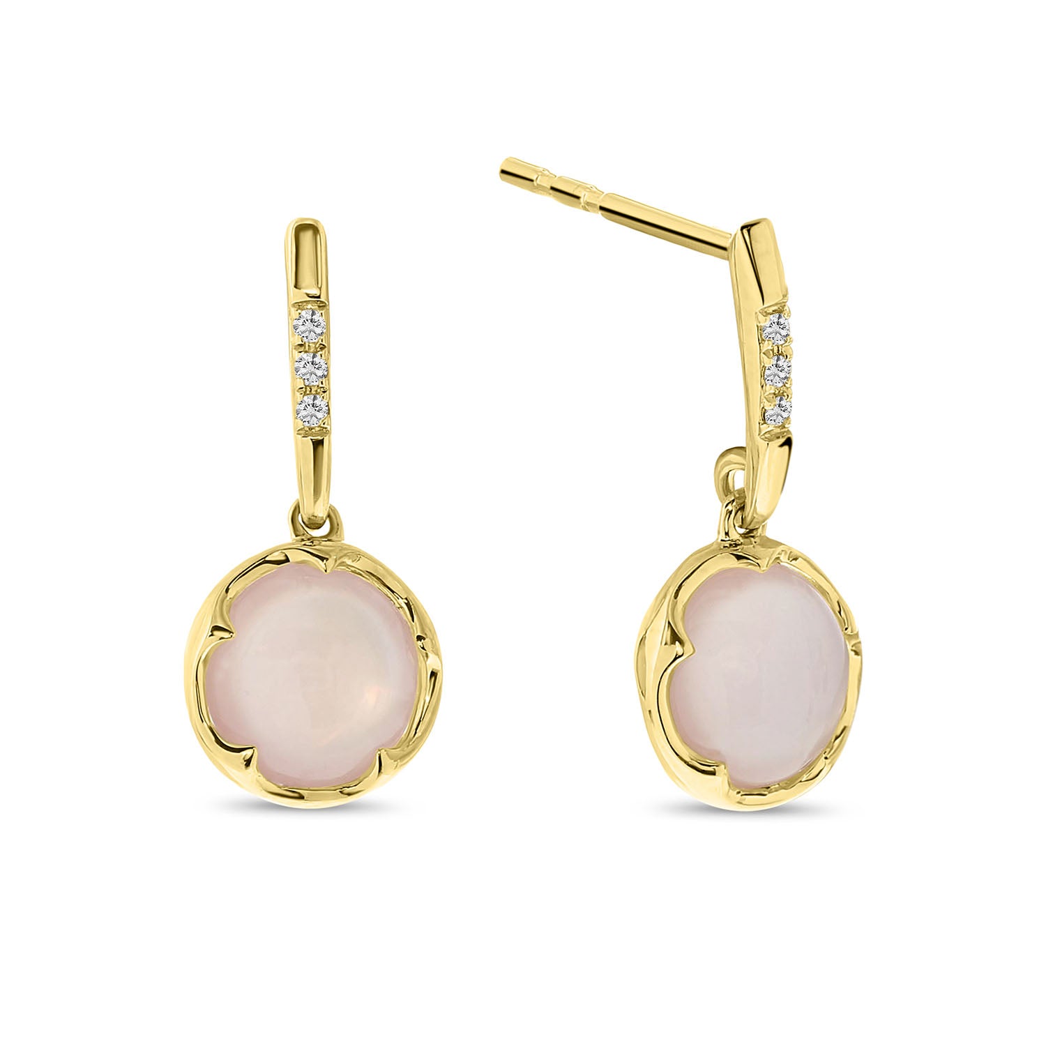 Cercei din aur galben cu cuart roz si diamante din colectia Diamonds by Siebel. Realizati din aur galben de 14 karate, acesti cercei prezinta o piatra rotunda de cuart roz si diamante. Asociati cerceii cu colierul si inelul asortate pentru a va completa look-ul.