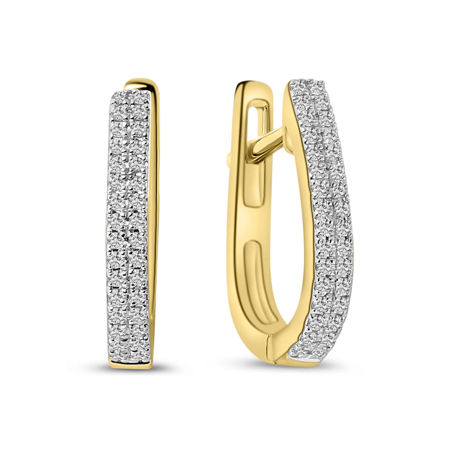Ofera aspectului tau un upgrade stralucitor cu acesti cercei eleganti, realizati din aur galben de 14 karate. Designul subtil este fixat cu diamante stralucitoare pentru un aspect rafinat. Un design atemporal potrivit atat pentru uzura de zi cu zi, cat si pentru ocazii speciale. Purtati acesti cercei singuri sau imperecheati-i cu alte piese din colectia Diamonds by Siebel pentru un stil luxos, coeziv.